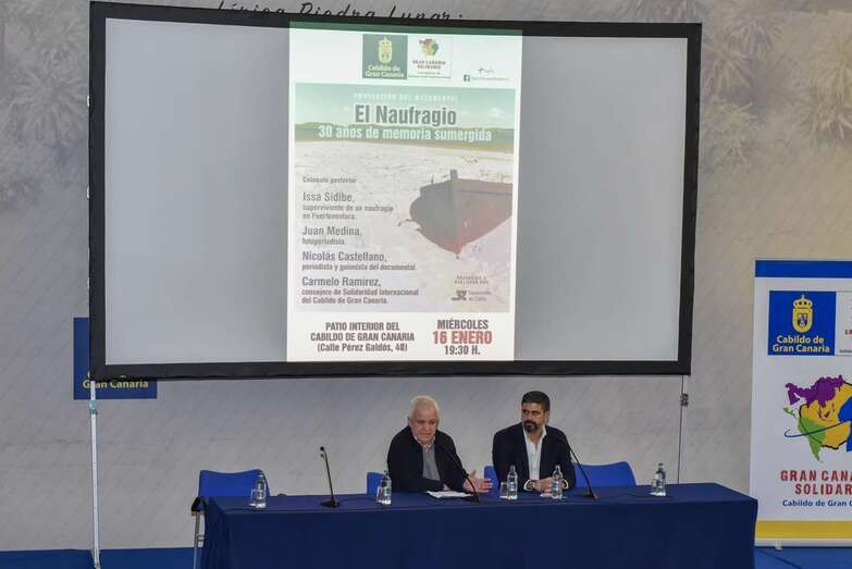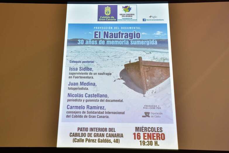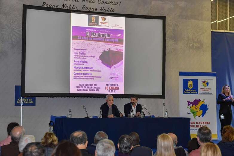 Telde.- El Patio del Cabildo de Gran Canaria acogió esta tarde noche la proyección del desgarrador documental El naufragio. 30 años de memoria sumergida, que mostró la cara más trágica de la inmigración, la de miles de personas que han perdido la vida al intentar llegar a las costas españolas, y dejó en evidencia el fracaso de las políticas de extranjería.