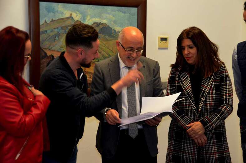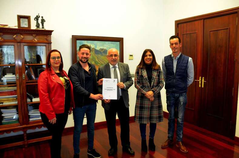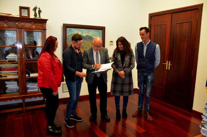 Una delegación vecinal acudió a la sede de la Institución insular acompañada por la alcaldesa Carmen Hernández para mantener un encuentro con el presidente Antonio Morales y hacerle entrega personalmente del documento.