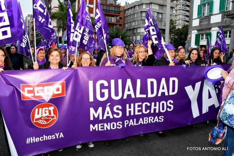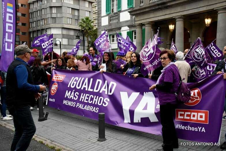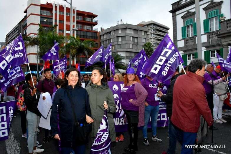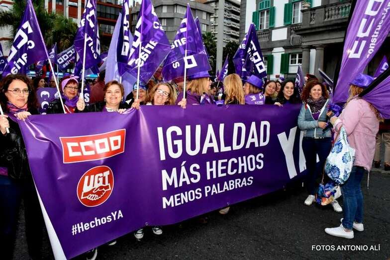 Los sindicados CCOO y UGT han asegurado que la huelga general convocada con motivo del Día de la Mujer ha tenido niveles de seguimiento en Canarias similares o superiores, dependiendo de los sectores, a los que se consiguieron en 2018, por lo que han calificado la jornada de "histórica".