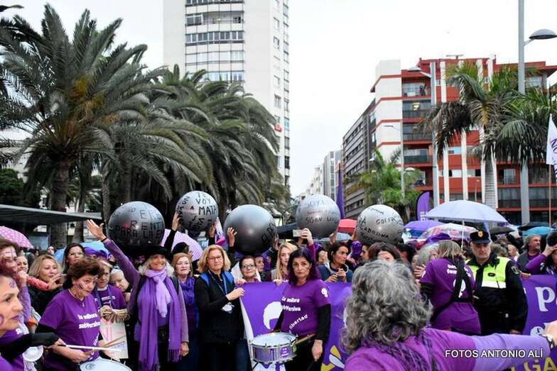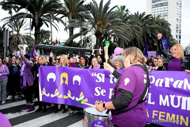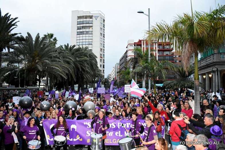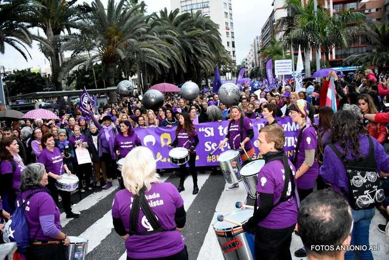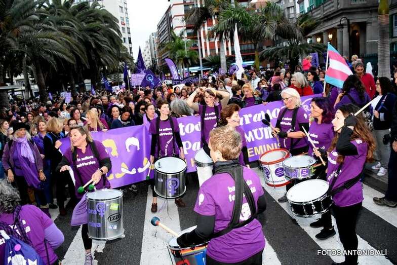 En Las Palmas de Gran Canaria, la manifestación comenzó con una batucada y ha discurrido desde la plaza de la Feria hasta la de Santa Ana, en un ambiente festivo con mujeres de todas las edades a las que también acompañaban niños.