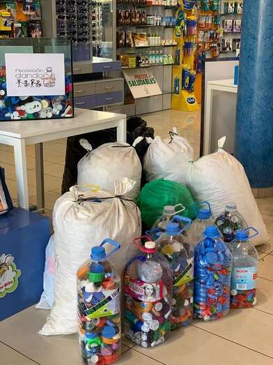 En esta ocasión, en tan sólo 15 días, han sido capaces de aglutinar los esfuerzos de los habitantes del barrio de La Herradura y colindantes para lograr tapones destinados a la Asociación Aportando Vida, afincada en Ingenio y que tiene como principal objetivo las ayudas técnicas (sillas de ruedas, camas articuladas…) y alimenticias a las personas con escasos recursos.