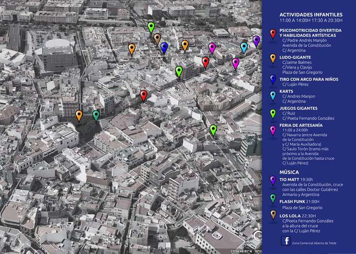 Además, desde las once de la mañana y hasta la medianoche abrirá una feria de artesanía que contará con 14 carpas y que en esta ocasión quedará emplazada en las calles Navarra (entre la Avenida de la Constitución y María Auxiliadora) y Saulo Torón (en el tramo más próximo a la Avenida de la Constitución y hasta el cruce con Luján Pérez).