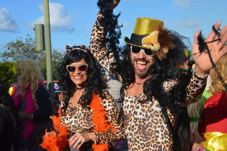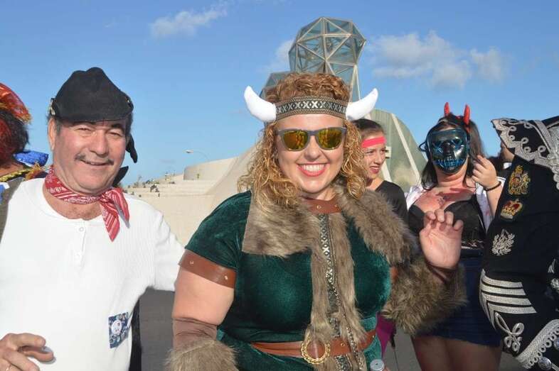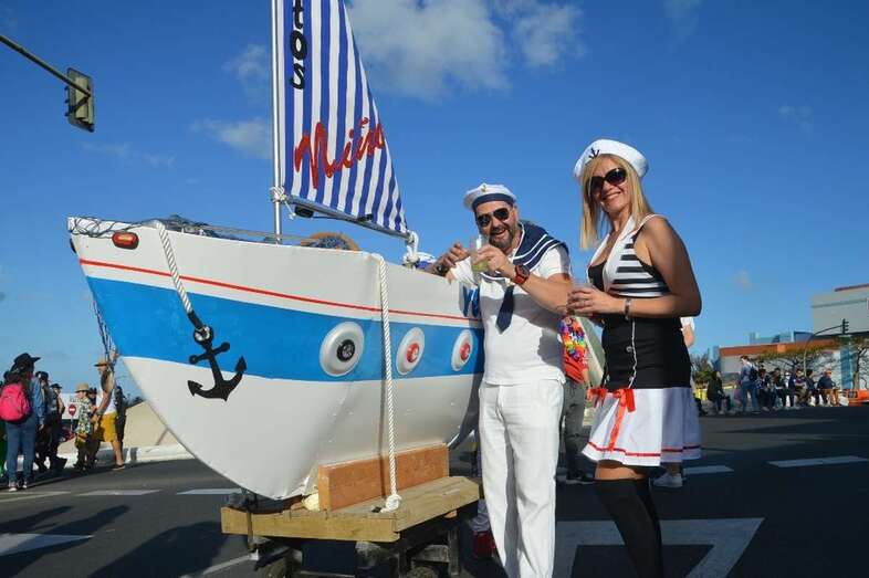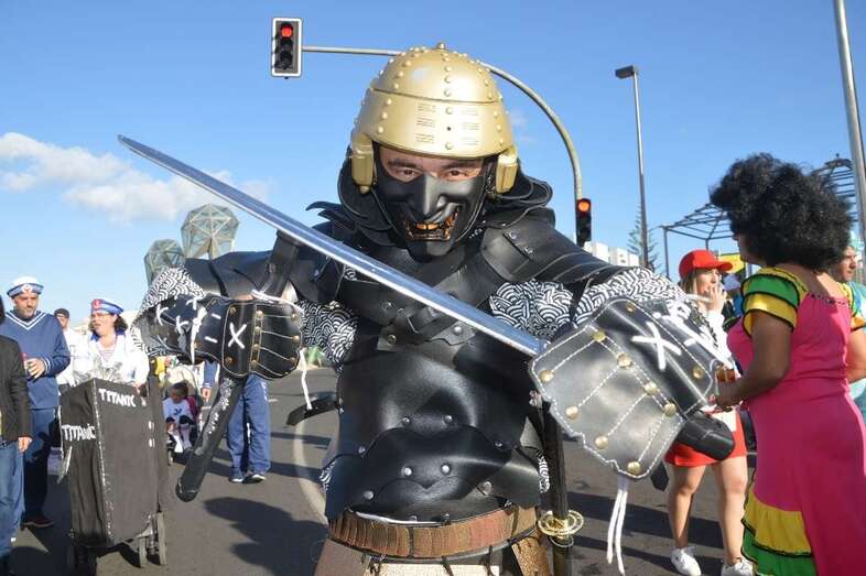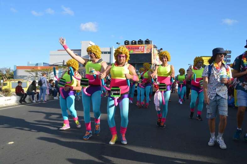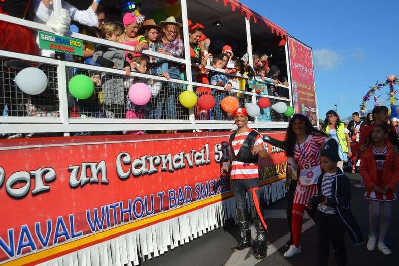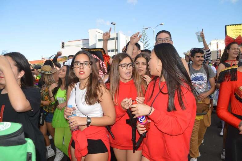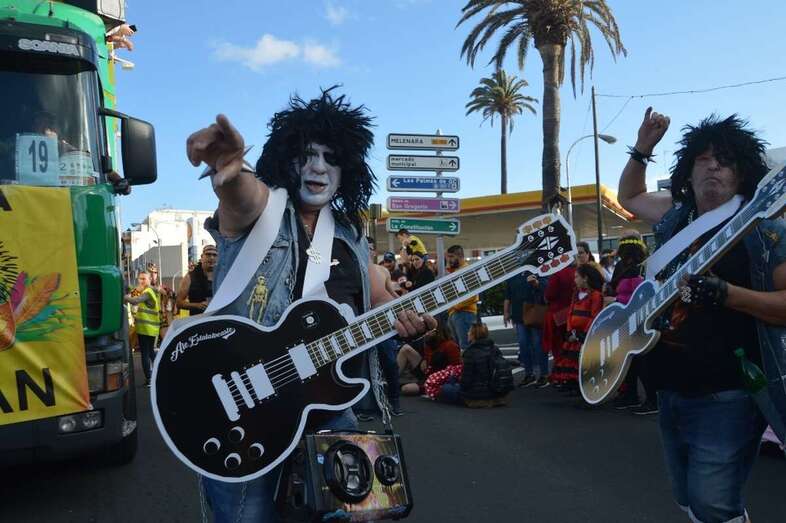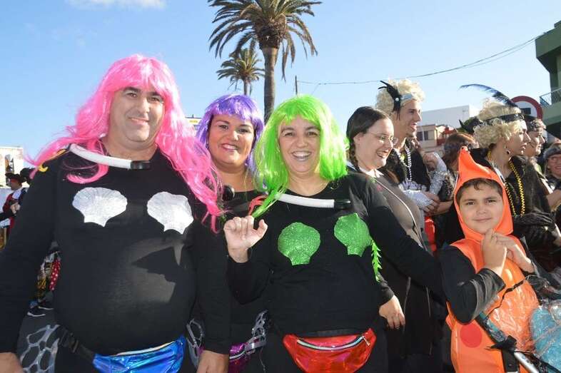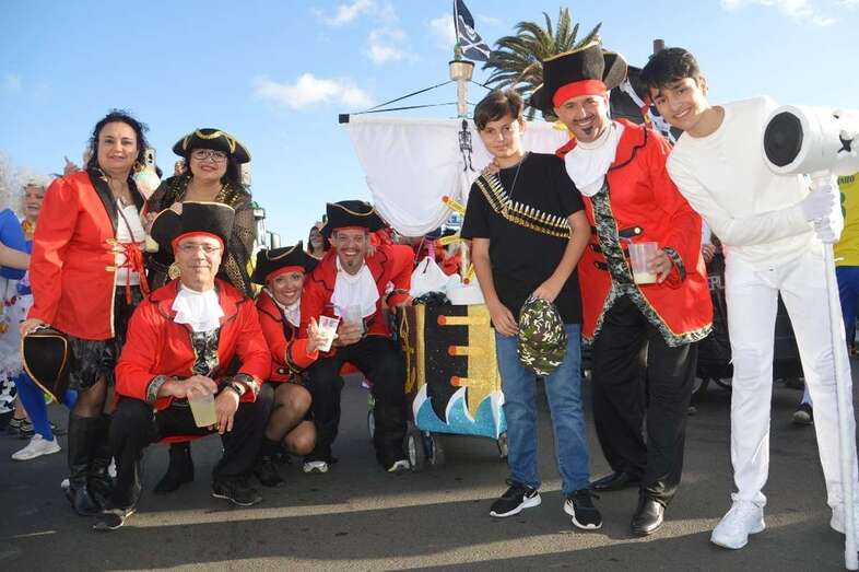 La marabunta carnavalera se puso en marcha pasadas las 17.30 horas en el sector de las ramblas de Picachos y sobre las 20.00 horas su cabeza enfilaba la calle de Alcalde Manuel Álvarez Peña, que desemboca en el entorno del Parque Urbano de San Juan, donde terminaría el ágil desfile de carrozas -una treintena-, grupos (murgas, batucadas, comparsas, etcétera) y miles de mascaritas ataviadas, unas con mucho gusto y otras a su estilo. Un gentió se agolpó en aceras y en la rambla de Arnao para seguir el paso de la cabalgata.