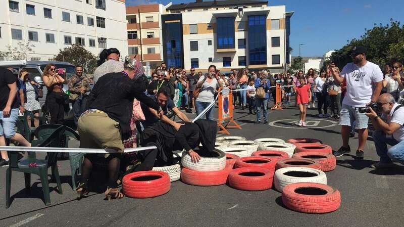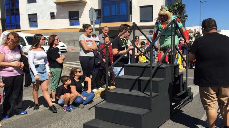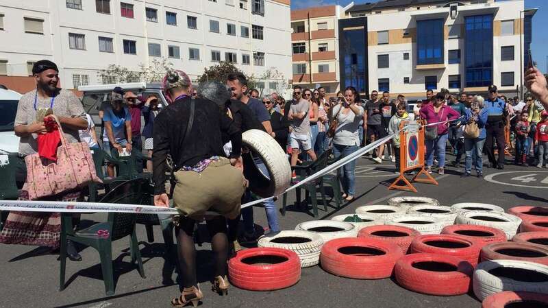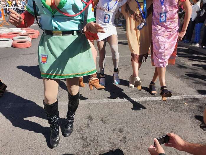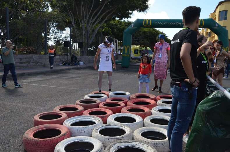 Subidos a plataformas de más de 7 centímetros, ocho participantes recorrieron un año más el circuito habilitado en la calle de Francisco Villén Lucena manteniendo el equilibrio y el tipo como pudieron.