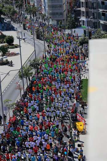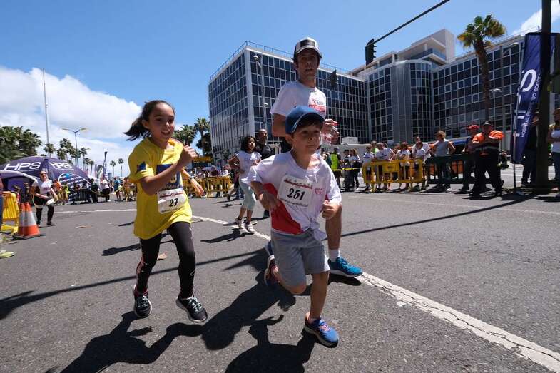 El millar de atletas del 10K realizaron dos vueltas al circuito, mientras que a las 12:00 fue el turno para los más de 3.500 deportistas que dieron color y ritmo en el 5.000 acompañado por batucadas, concierto y Zumba como parte de esta carrera promovida por Canarias7 y DG Eventos.