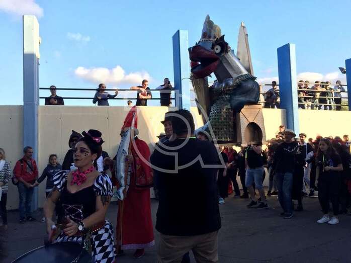 Telde.- El Entierro de la Sardina puso hace unos minutos el punto final al Carnaval de Telde 2019, inspirado en el París bohemio de los años 20 del siglo XX. No fue un sepelio triste. Una ruidosa tamborada acompañó la comitiva fúnebre desde su arranque en el auditorio hasta las canchas del Parque Urbano de San Juan, donde tuvo lugar la combustión del conocido símbolo carnavalero.
