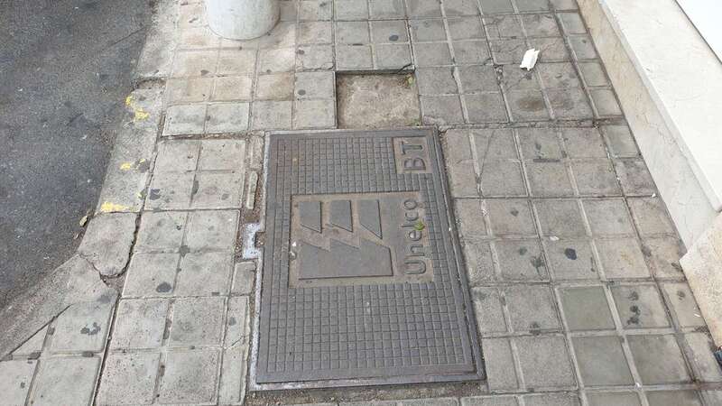 Días atrás una ciudadana adulta de Telde sufrió un serio percance en este lugar al tropezar con el ahuecado espacio, ubicado junto a una arqueta de la red eléctrica con su tapa un poco saliente y un poste de la luz del alumbrado público.