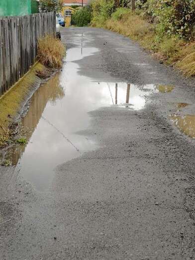 El camino lleno de grandes charcos de agua (Foto TA) El camino lleno de grandes charcos de agua (Foto TA)