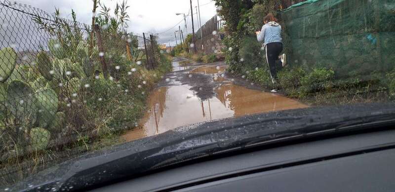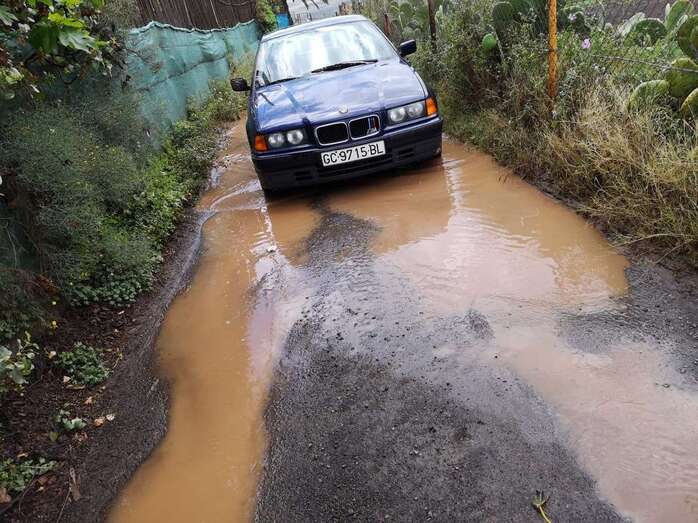 Telde.- El camino Piletas en Montaña Las Palmas hace honor a su nombre, ya que cuando caen tres gotas se forman grandes charcos que la hacen casi intransitable.