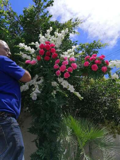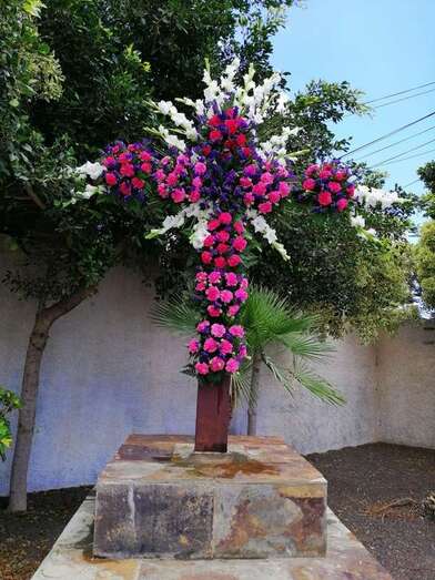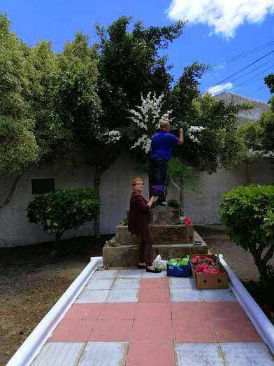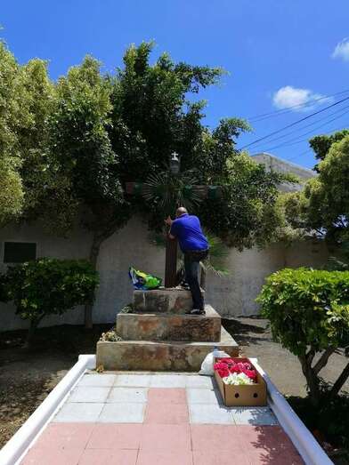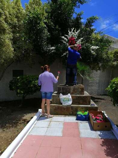 En Jinámar, un nutrido grupo de vecinos se encaramó a lo alto de la montaña próxima a Lomo Blanco para cumplimentar con el tradicional enramado de la Cruz que corona su cima. El punto de partida fue como siempre la recoleta ermita del barrio, donde a las 10.00 horas quedaron citados los vecinos y amigos.