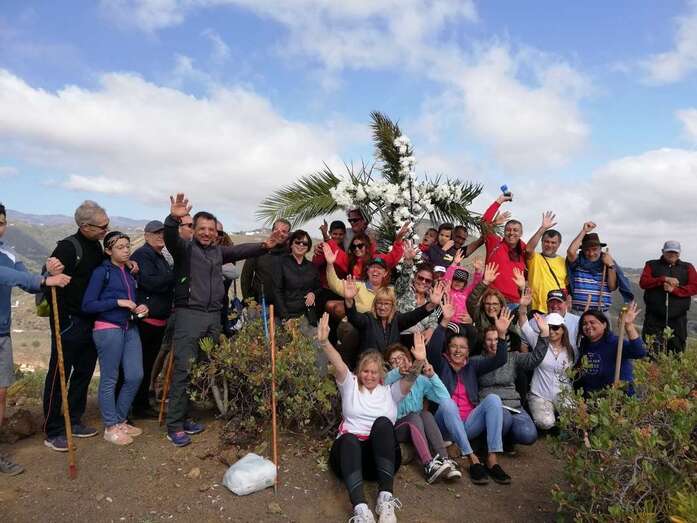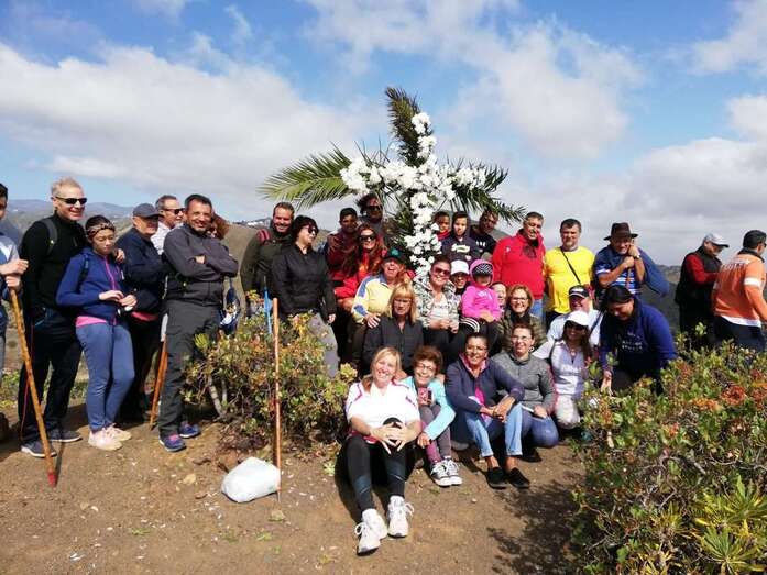 En el barrio de Jinámar un nutrido grupo de vecinos subió a la cima de la montaña próxima
