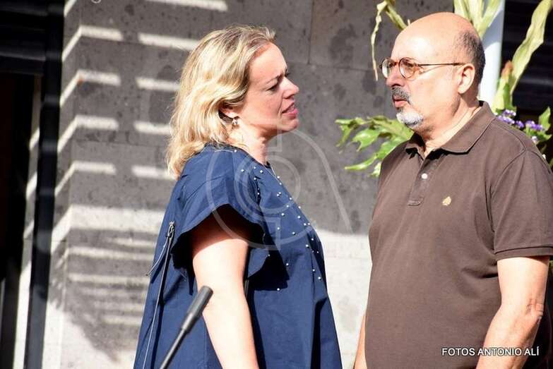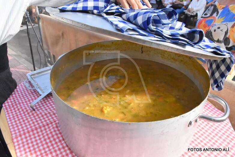 La alcaldesa Carmen Hernández observa la preparación del potaje canario en plena calle (Foto TA) La alcaldesa Carmen Hernández observa la preparación del potaje canario en plena calle (Foto TA)