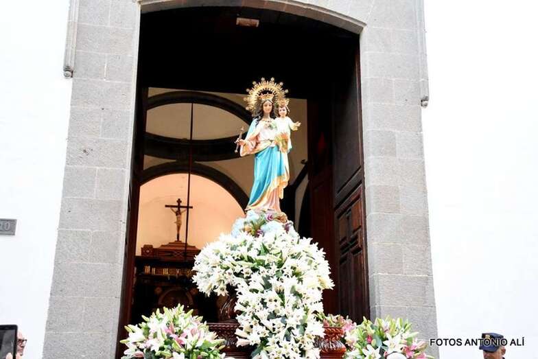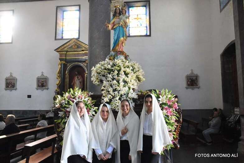 Como cada 24 de mayo, la comunidad salesiana de Telde celebró el día de su patrona con una magna procesión que cubrió el trayecto  de una hora de duración que va del templo neoclásico de Los Llanos al colegio de la calle de Ruiz, tras la misa oficiada por el párroco Luis Marrero, en un periplo del bello trono engalanado con azucenas por Segundo Amador por la Avenida de la Constitución, Navarra, Secretario Guedes Alemán y El Salvador. Una vez allí, entró en el patio del centro educativo.
