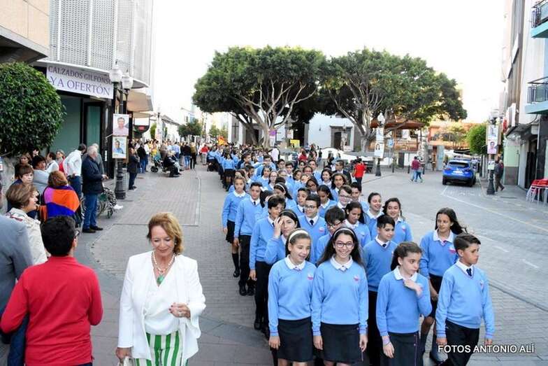 Telde.- Con viento y una temperatura algo fresca, la imagen de María Auxiliadora recorrió esta tarde las calles de Los Llanos de Telde, entre la Parroquia de San Gregorio y el Colegio Salesiano, en un vistoso desfile religioso por su festividad en el que participaron alumnos y profesores del citado centro educativo privado.