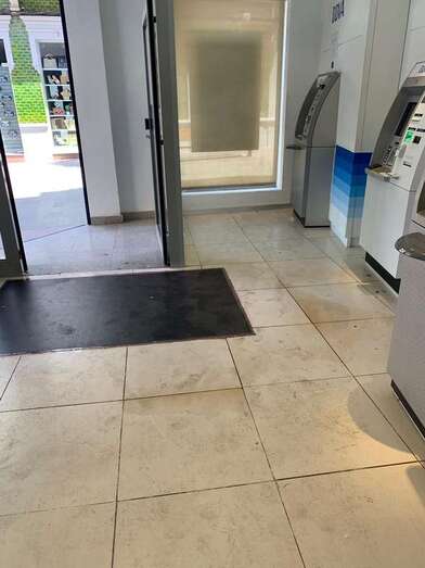 Reguero de orines malolientes en la oficina del BBVA de Los Llanos (Foto TA) Reguero de orines malolientes en la oficina del BBVA de Los Llanos (Foto TA)
