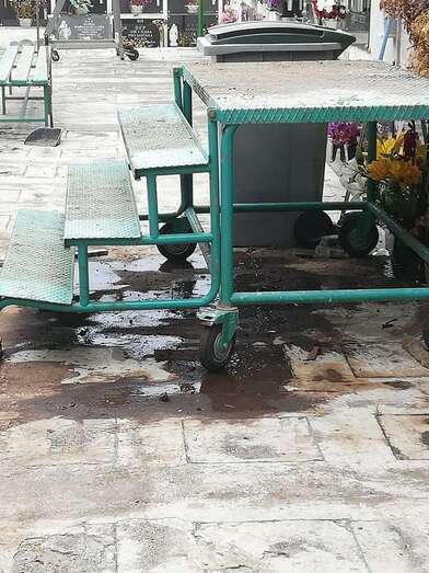 A la una menos cuarto de la tarde se realiza el entierro y todos los familiares tuvieron que estar encima de los líquidos malolientes ya que ni si quiera se dignó en echar agua con una manguera en el lugar de los hechos, lo que podría ser una infracción grave en tema de Sanidad.