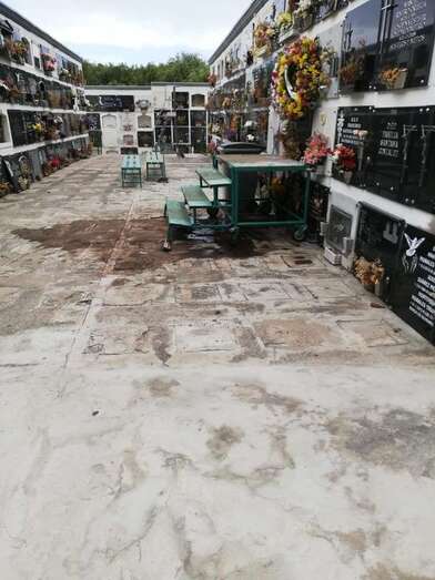 En el día de hoy a las ocho de la mañana se realizó una apertura en un nicho ( el número 1567) en el cementerio de San Juan, el operario se queja a los familiares de que encima tiene que recoger los restos y los escombros.