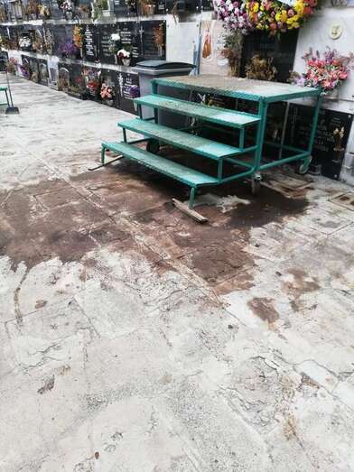 Aseguran que el operario del camposanto derramó por el suelo la bolsa con los restos esqueléticos estaba llena de líquido maloliente y no limpió con agua los residuos esparcidos.