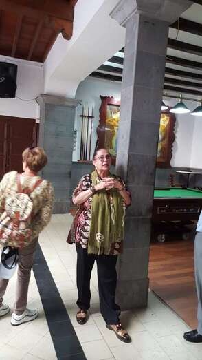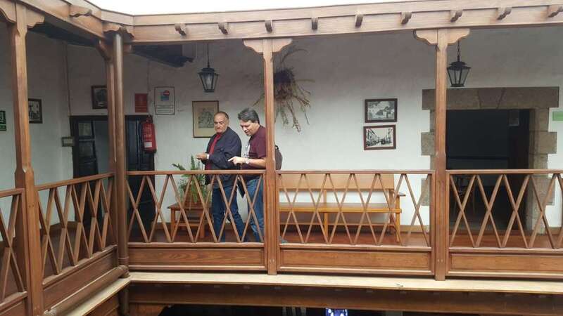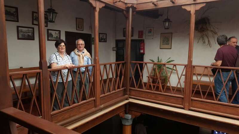El vicepresidente de la centenaria entidad, Antonio Benítez, les explicó la historia de la sociedad fundada en 1908 y el patrimonio arquitectónico y artístico que atesora en un recorrido por las instalaciones del inmueble de dos plantas ubicado en el mismo corazón del conjunto monumental de la ciudad.