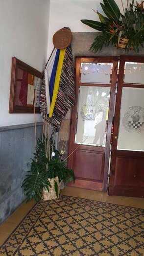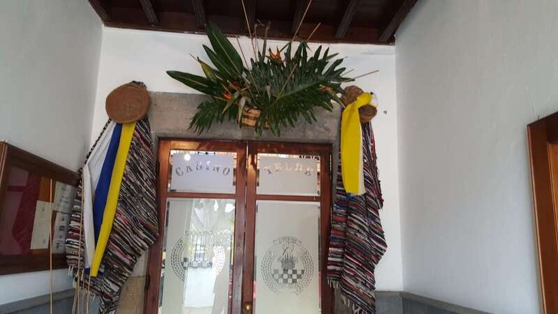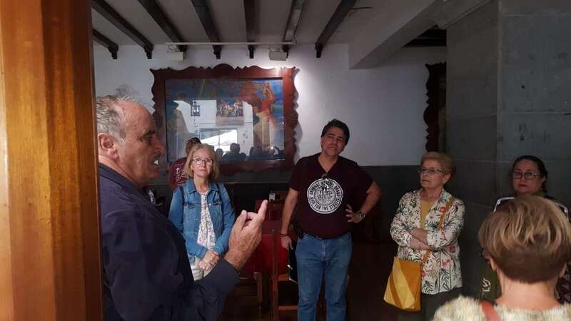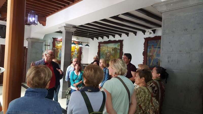 Telde.- Un grupo de miembros de la Asociación Músico-Cultural Los Jallaos Roniaos, de Arucas, visitó este sábado el histórico edificio que alberga la sede de El Casino de Telde, en la plaza de San Juan.