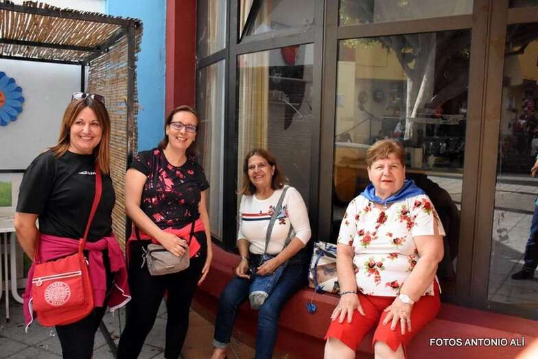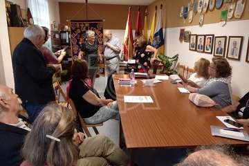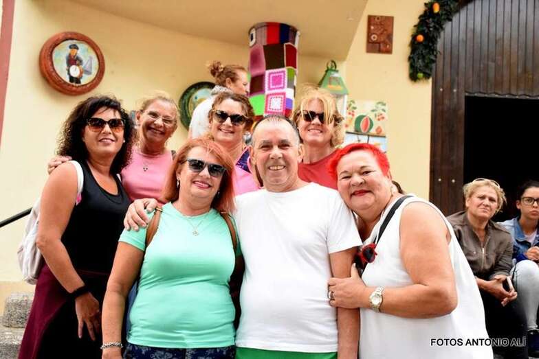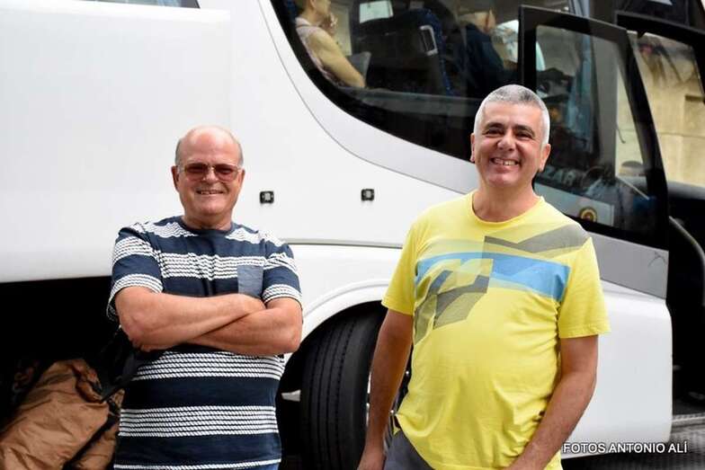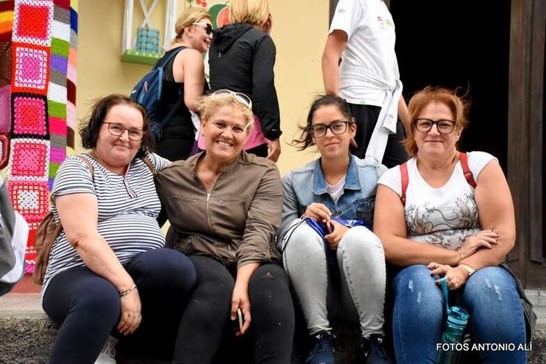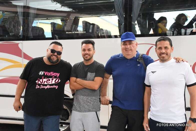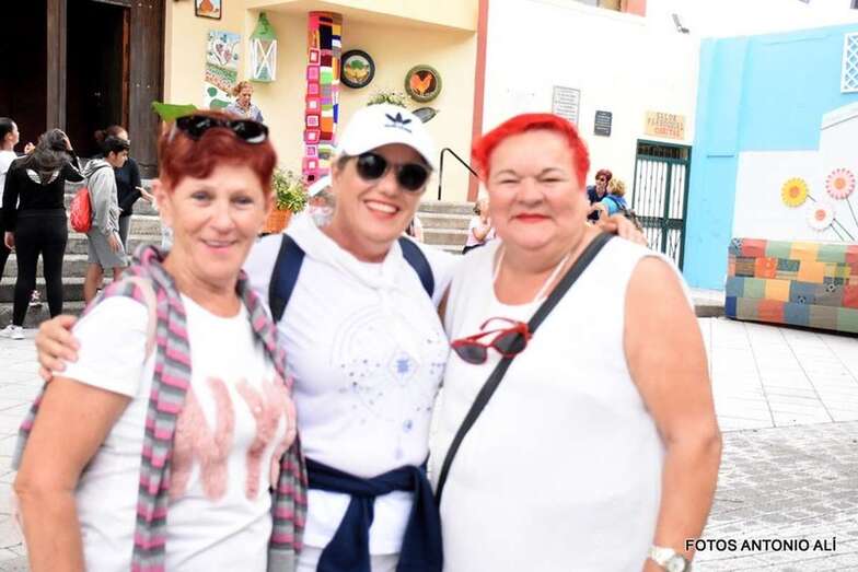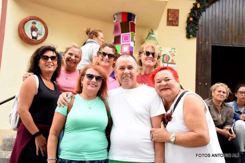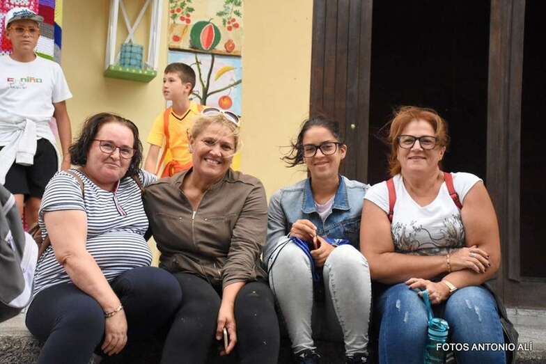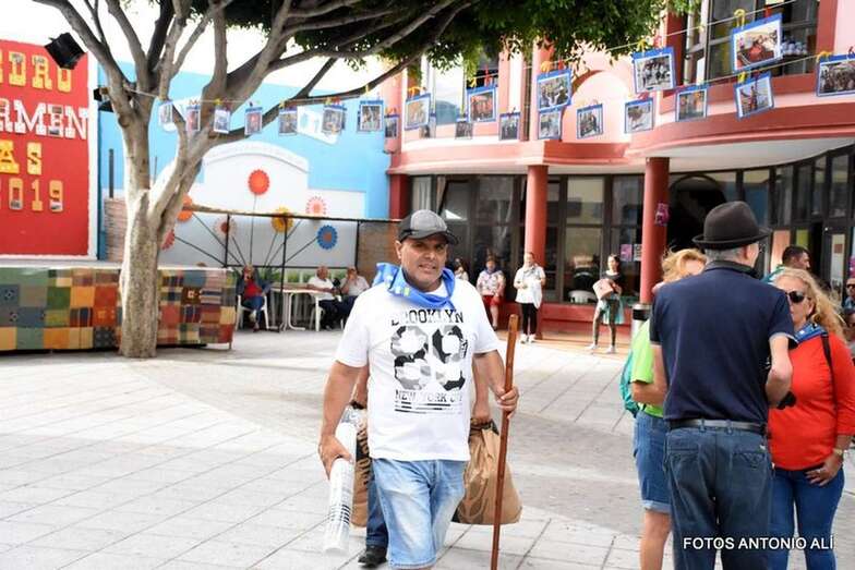 Otros, los más mayores y aquellos con dificultades físicas para completar el trayecto, lo hacen a bordo de una guagua fletada por la comisión de fiestas.