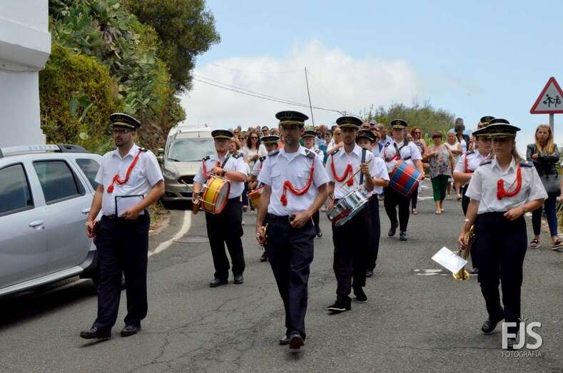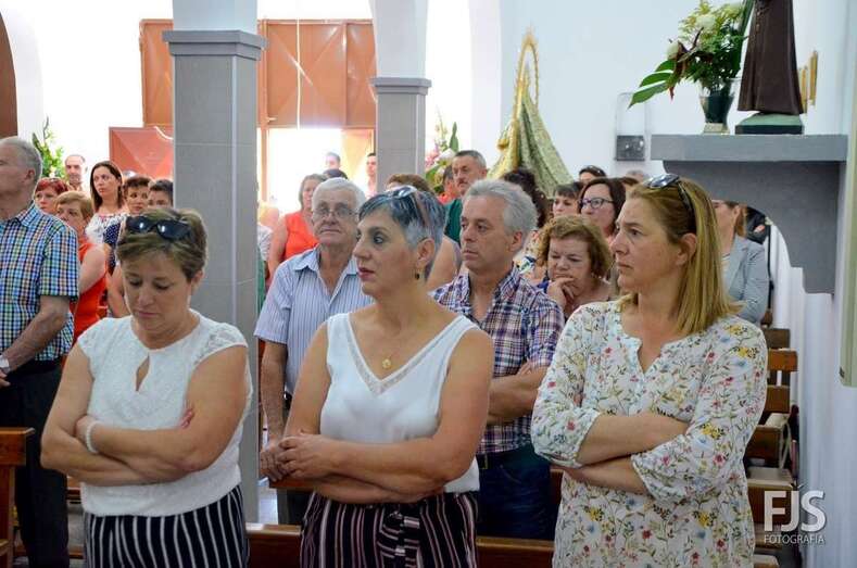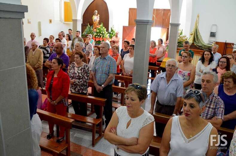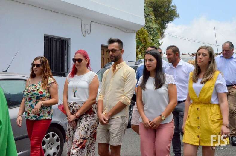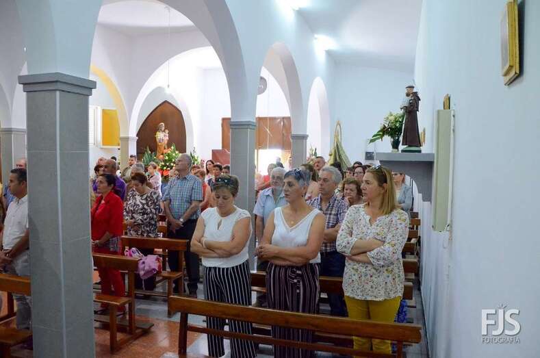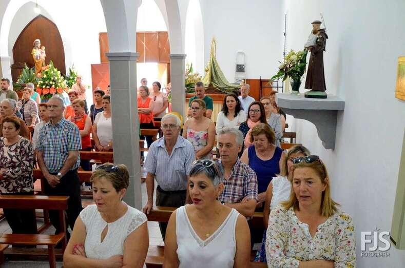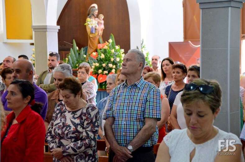 Los oficios religiosos comenzaron al mediodía con una eucarística oficiada por el párroco de la zona, Fernando Báez. A su término, el desfile de los tronos de los patronos por el recorrido de costumbre con el acompañamiento de numerosos fieles, la Banda de Cornetas y Tambores de San José de Las Longueras y de autoridades municipales, entre las que se encontraban el concejal de Festejos, Servando González, y varios miembros más de la nueva Corporación local.