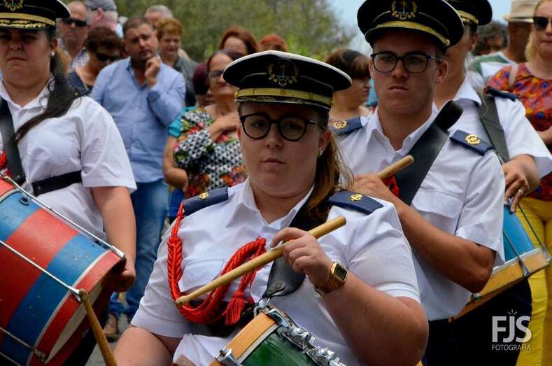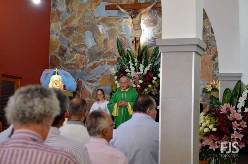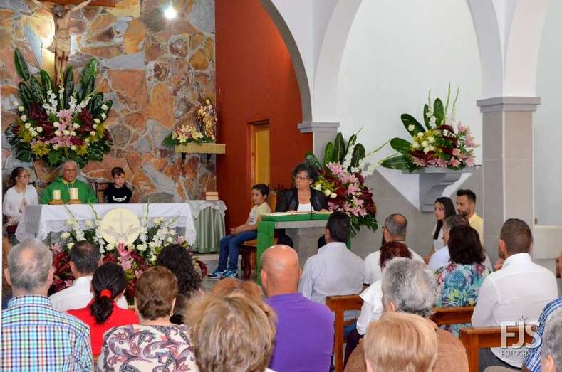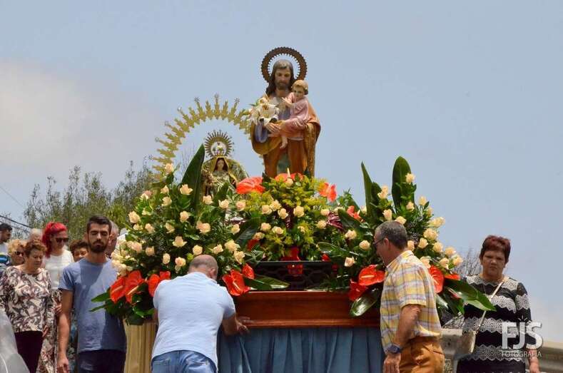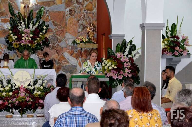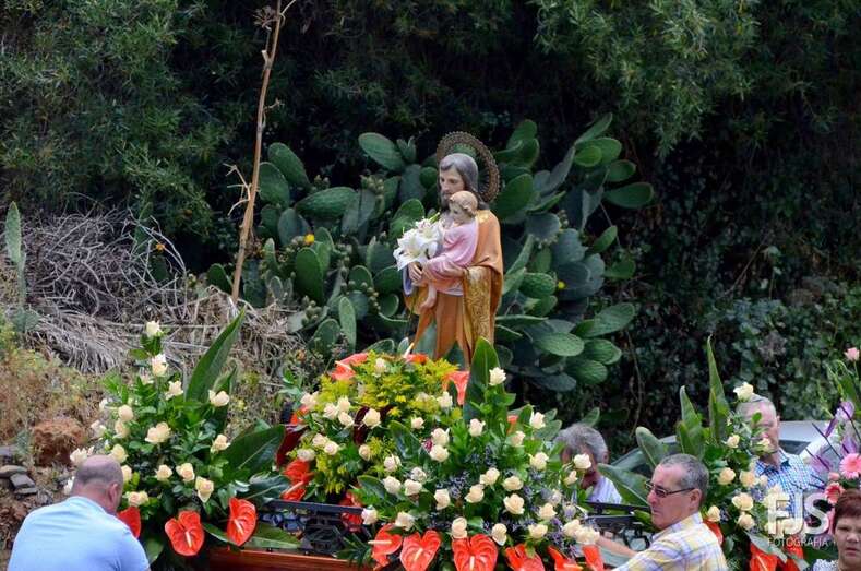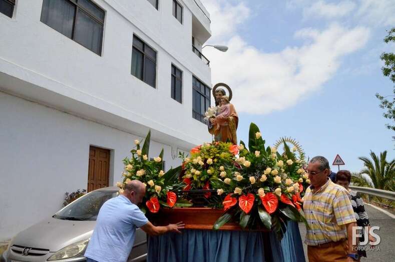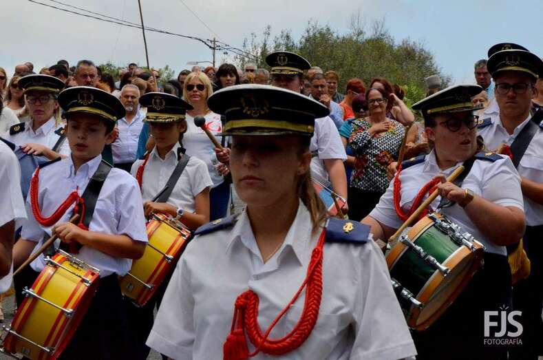 Los oficios religiosos comenzaron al mediodía con una eucarística oficiada por el párroco de la zona, Fernando Báez. A su término, el desfile de los tronos de los patronos por el recorrido de costumbre con el acompañamiento de numerosos fieles, la Banda de Cornetas y Tambores de San José de Las Longueras y de autoridades municipales, entre las que se encontraban el concejal de Festejos, Servando González, y varios miembros más de la nueva Corporación local.
