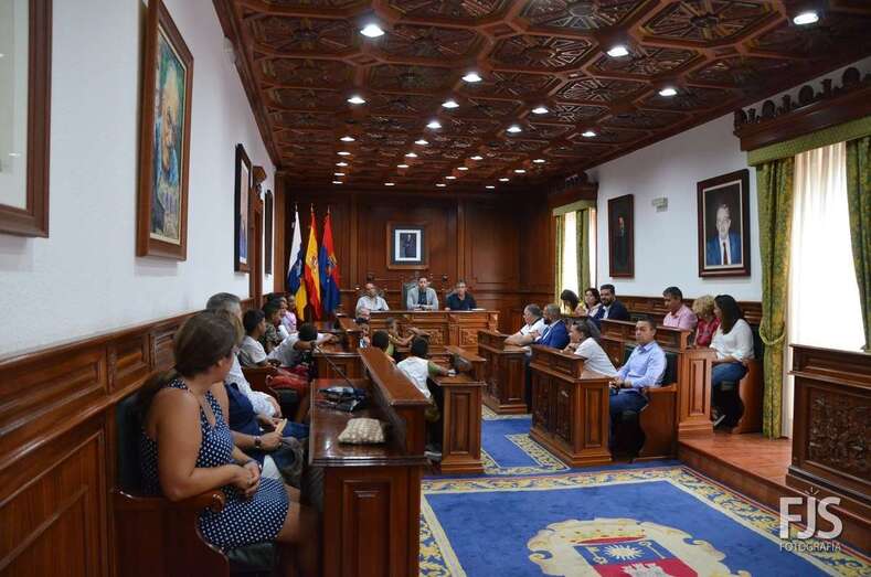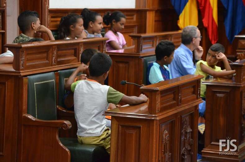 Una parranda les dio la bienvenida con sones folclóricos mientras una amplia representación municipal, con el alcalde Héctor Suárez y el concejal de Solidaridad, Juan Francisco Artiles, a la cabeza, los recibía en las Casas Consistoriales. Luego subieron al Salón de Plenos y junto a los concejales ocuparon los escaños en un sencillo pero emotivo acto en el que la Corporación local dejó patente el compromiso de Telde con la causa del pueblo saharaui y su compromiso con este programa de Vacaciones en Paz que se desarrolla ininterrumpidamente desde la década de los 90.