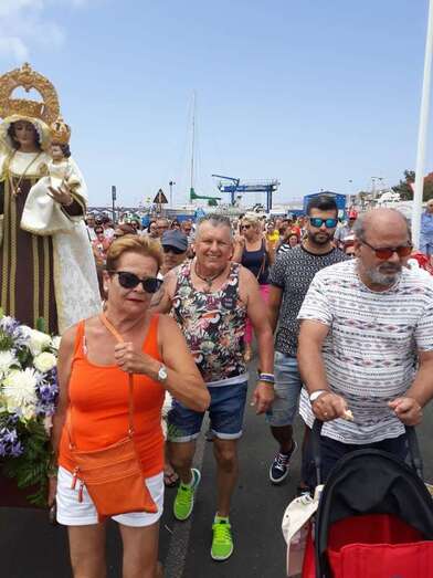 A bordo del Paquita Pérez, la Virgen del Carmen surcó la bahía de Taliarte y Melenara hasta llegar a Salinetas para luego dar la vuelta y regresar al muelle. En todo momento en medio del habitual jolgorio y arropada por muchas personas que siguieron la estela de la patrona de los marinos desde otras embarcaciones.