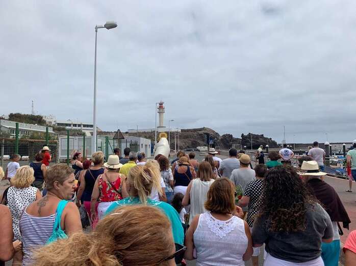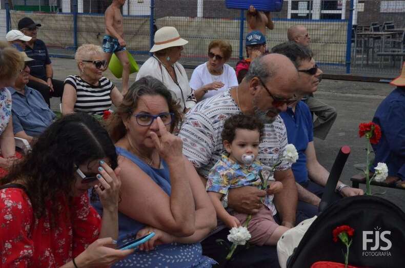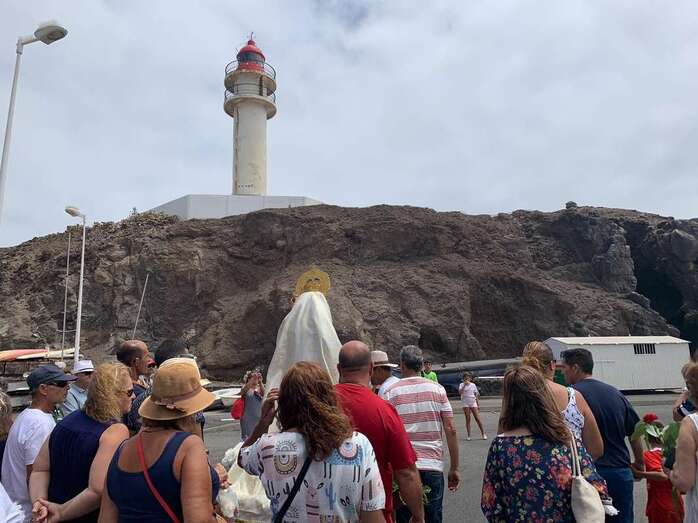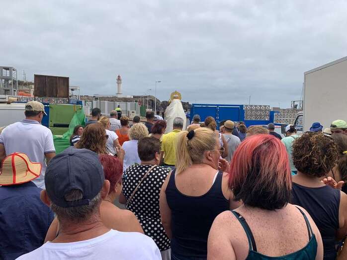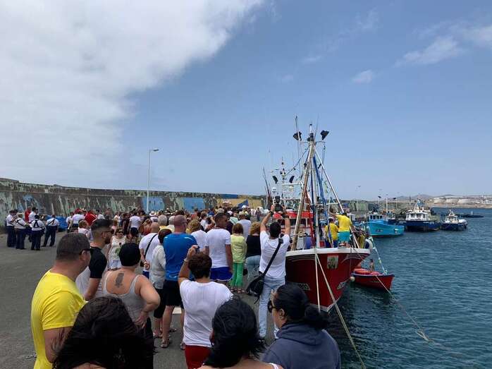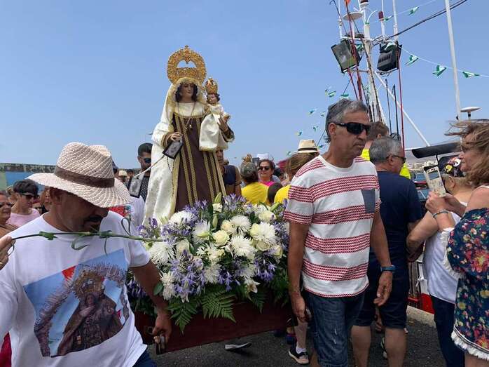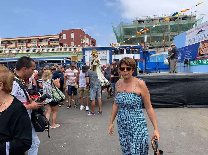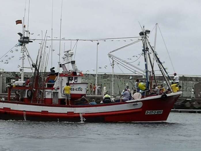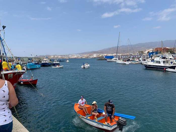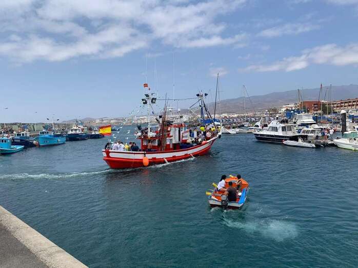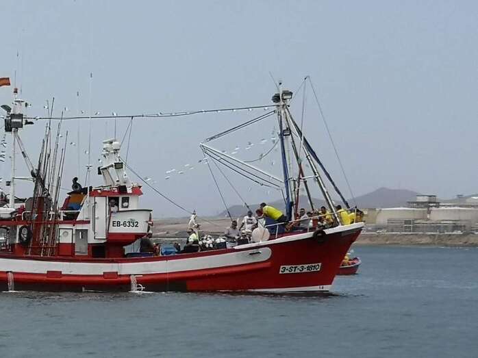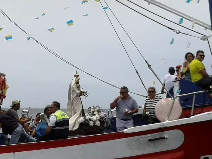 Decenas de personas asistieron a la misa previa, oficiada en la explanada del muelle pesquero y deportivo. Y a su finalización los vecinos trasladaron la imagen religiosa hasta el Paquita Pérez, uno de los barcos de la flota de Taliarte y Melenara que faenan en estas aguas.