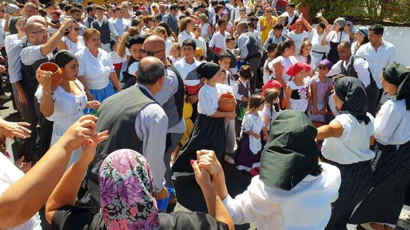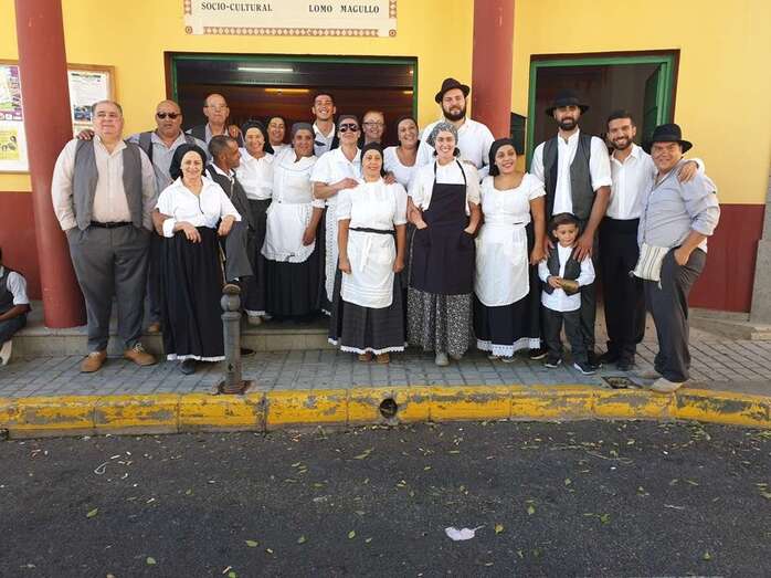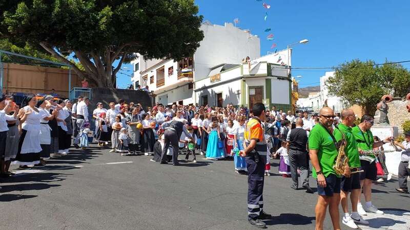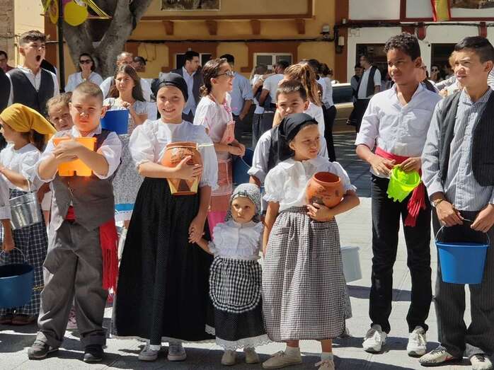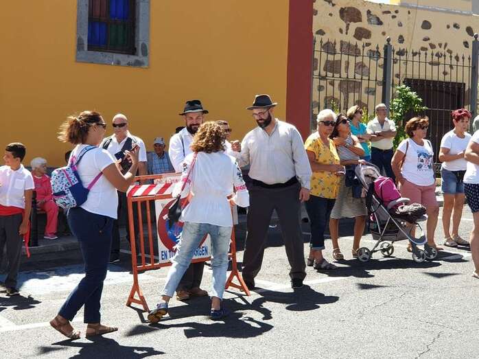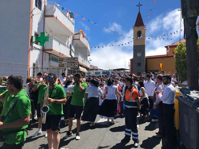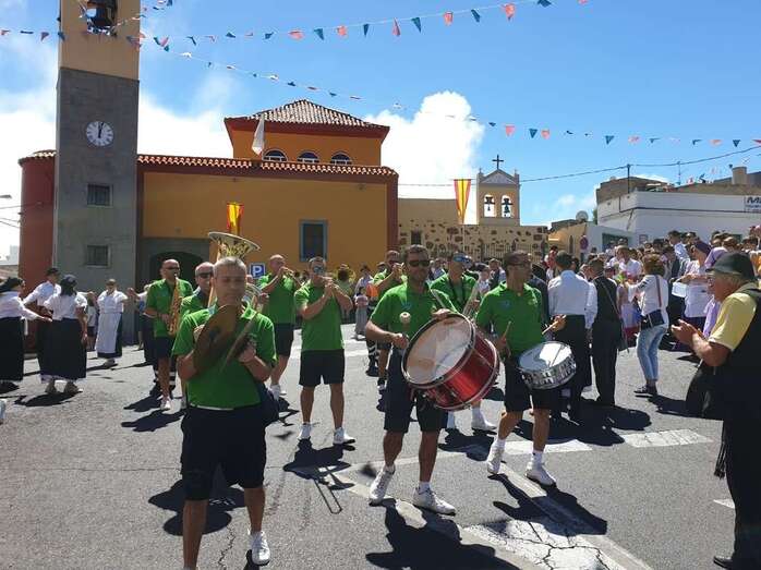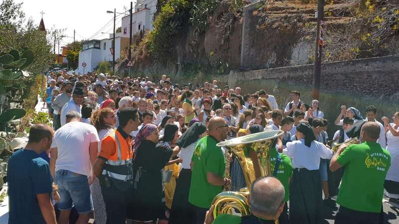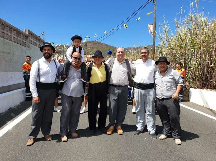 A partir de ese momento, la banda Vitamina marcó el paso de la comitiva de niños y sus padres y madres hasta el lugar de la carretera general de Lomo Magullo donde, una vez más, estalló la batalla del agua cogida con baldes y cubos en la remozada acequia de la Heredad del Valle, donde se descubrió una placa conmemorativa de las obras ejecutadas en presencia de varias ediles del Gobierno de Telde, entre ellos Juan Martel, Jonay López y Servando González, que compartieron con la chiquillería esta divertida fiesta.