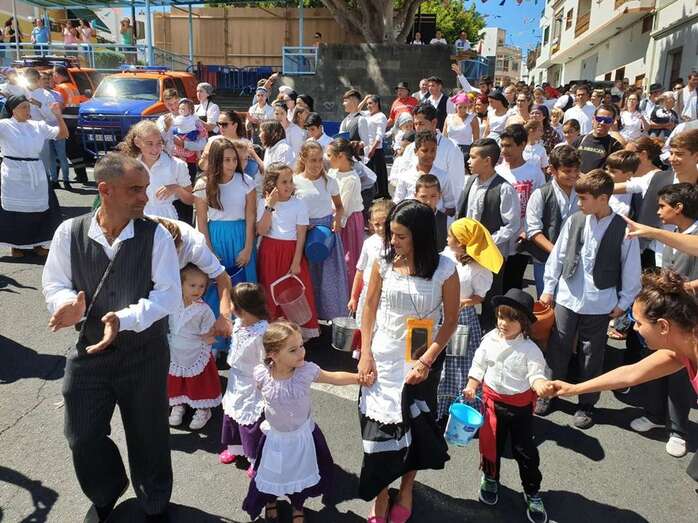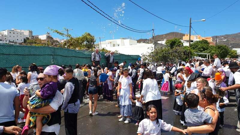 Telde.- El agua llegó este mediodía en forma de llovizna en la costa de Telde. Mientras tanto, a esa hora, unas 400 personas, en su mayoría chiquillos menores de 15 años, disfrutaban de una nueva edición de la Traída Infantil bajo un sol de justicia y con una temperatura ambiental ideal para el remojo.