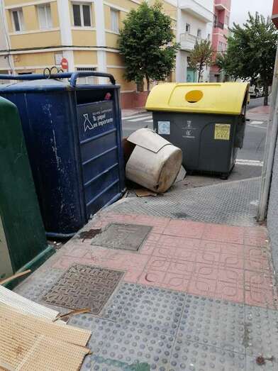 LLeva semanas tirado junto a depósitos para la recogida de residuos en la calle de Manolo Millares