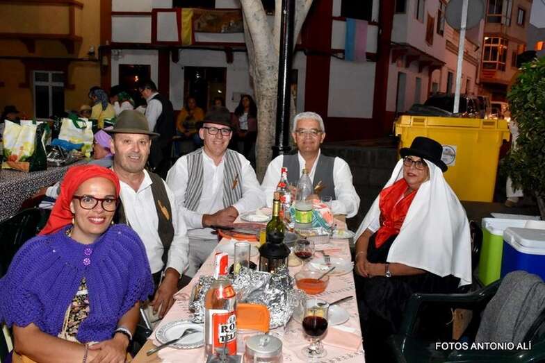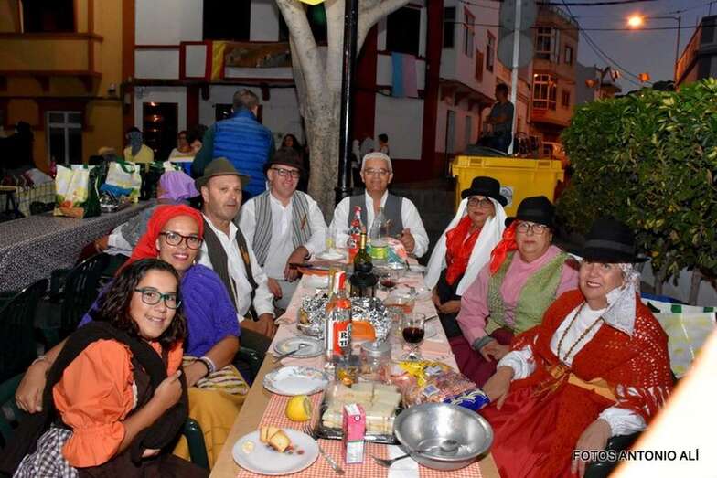 El concurso se celebró en la plaza pública en el marco de X Noche de Tradiciones uno de los actos que más vincula Lomo Magullo a sus raíces como pago de medianías y pegado al mundo rural. El recinto y calles aledañas se llenaron de mesas en torno a las que decenas de vecinos compartieron unas horas colmadas de fraternidad mientras disfrutaban de música canaria.