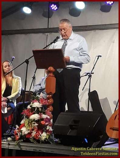 La plaza pública de esta pequeña entidad demográfica fue el escenario para el arranque de las fiestas en honor de San Roque. Pedro Juan Galván, natural de Tenteniguada y licenciado en Medicina por la Universidad de La Laguna, recordó vivencias de su infancia y juventud en su municipio natal.