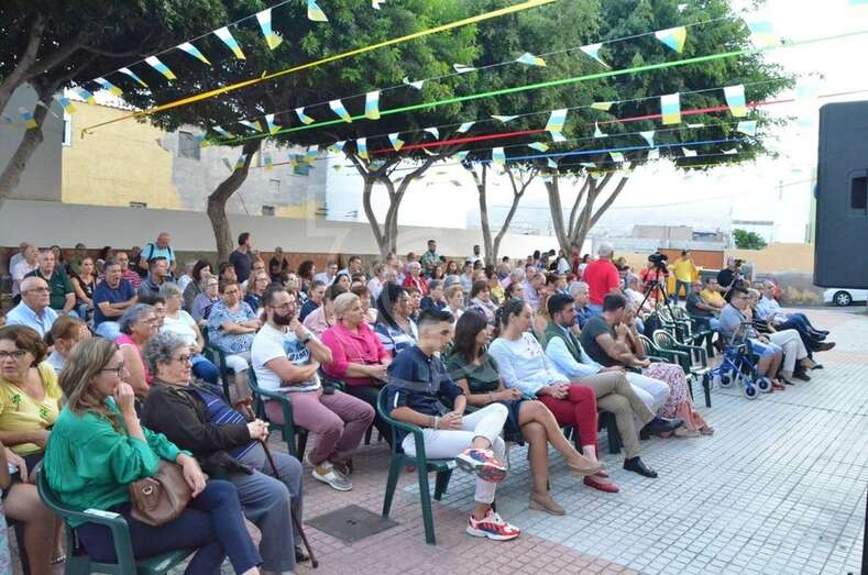 Con una plaza llena de gente y de miembros de la Corporación teldense, el pregonero, que fue presentado por Carmina Martínez, directora de Radio Las Tirajanas, se refirió también en el corto texto que leyó al nacimiento del colectivo vecinal en mayo de 1977, con el que comenzó, apuntó, “una lucha nunca acabada por intentar alcanzar las mayores cotas de bienestar para los que aquí habían decidido vivir y para constituir un barrio, una comunidad social, con entidad e identidad propias, vinieran de donde vinieran los que por aquí recalaron”.