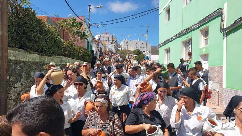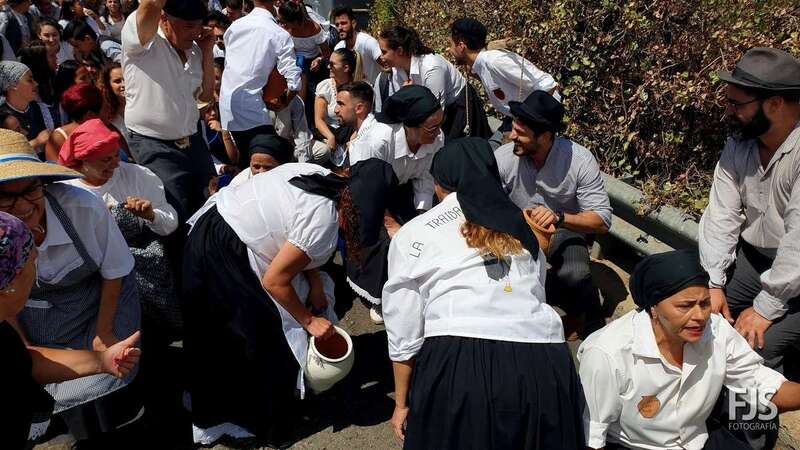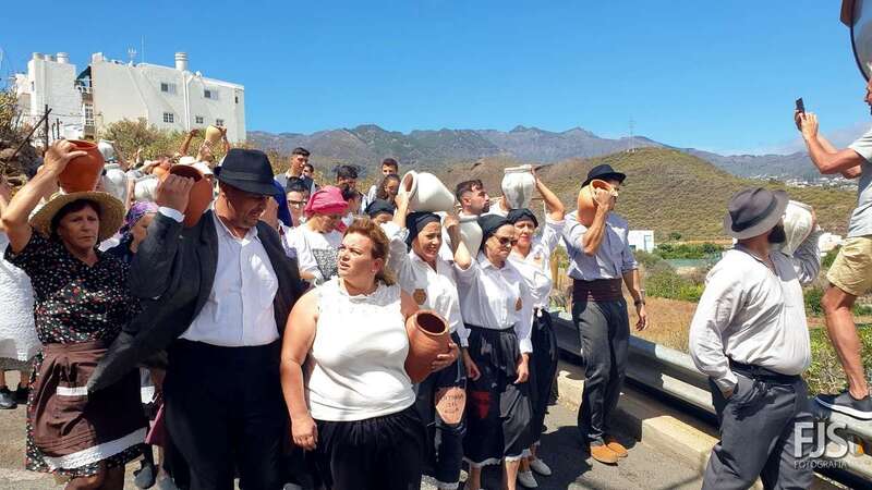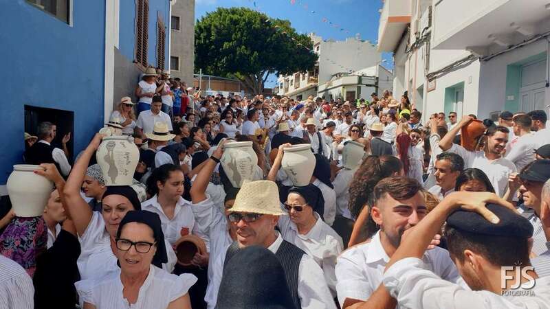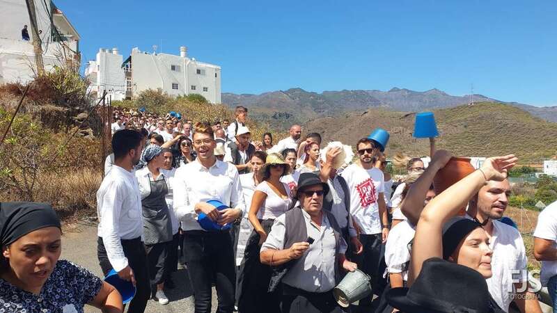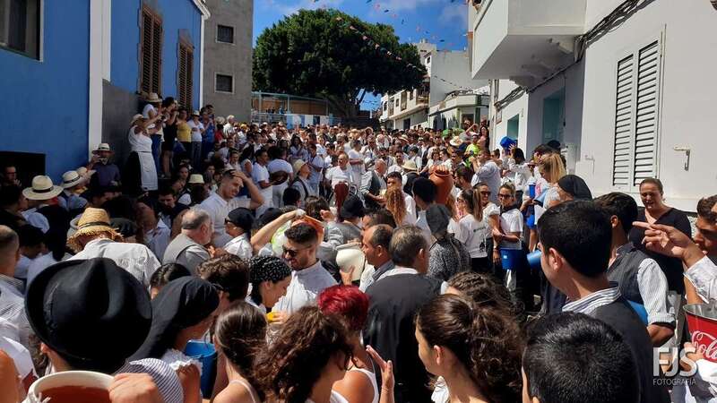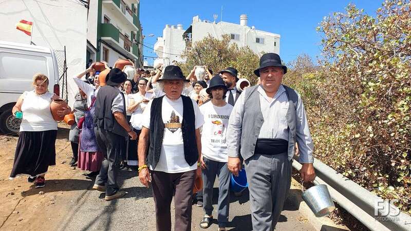 La batalla de agua entre los participantes se iniciaría poco después en la carretera general de Lomo Magullo, bajo un sol de justicia, junto a la renovada acequia de la Heredad del Valle de los Nueve, que aporta el líquido para este peculiar remojón colectivo que jóvenes y adultos agradecen porque ayuda a soportar el calor propio de la época en este sector de las medianías de Telde.
