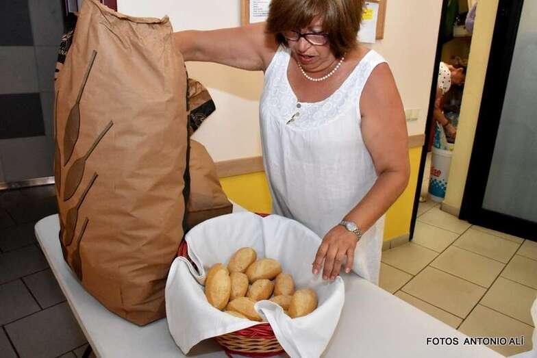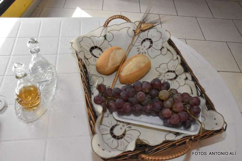 Tras la misa tuvo lugar la ceremonia de bendición y reparto de pan entre los asistentes y una ofrenda al santo patrono con alimentos no perecederos.