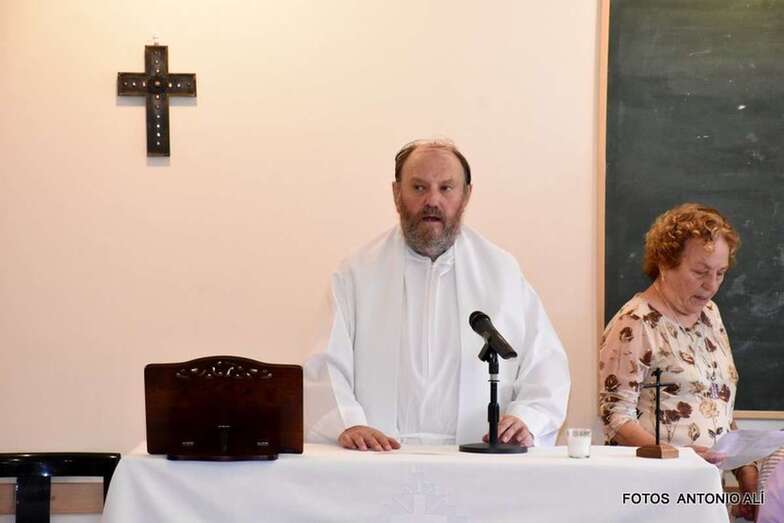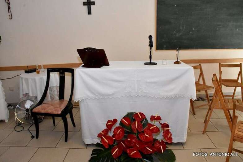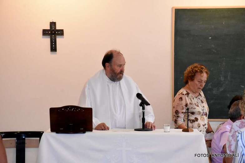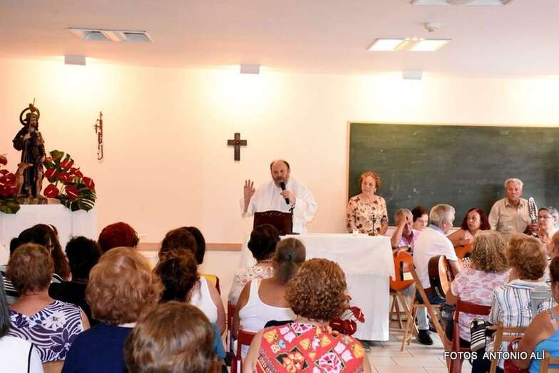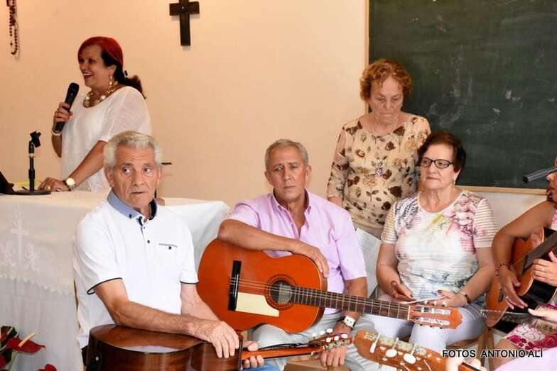 El sacerdote Luis Laborda, titular de la Parroquia de San Juan Bosco del Valle de Jinámar, ofició una misa cantada por la parranda del colectivo que preside Saro Sosa.
