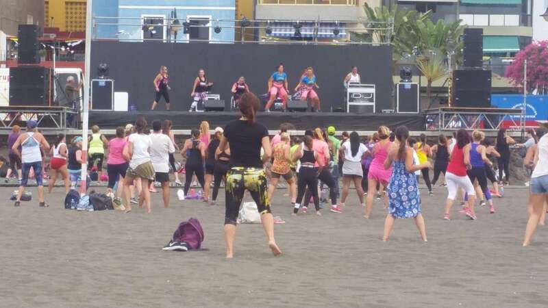 Por la mañana, a partir de las 10.30 horas, los instructores David Ávila y Guacimara Rodríguez impartieron una clase magistral de Zumba que fue seguida por decenas de personas.