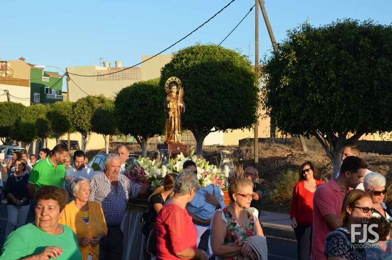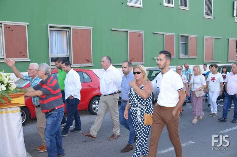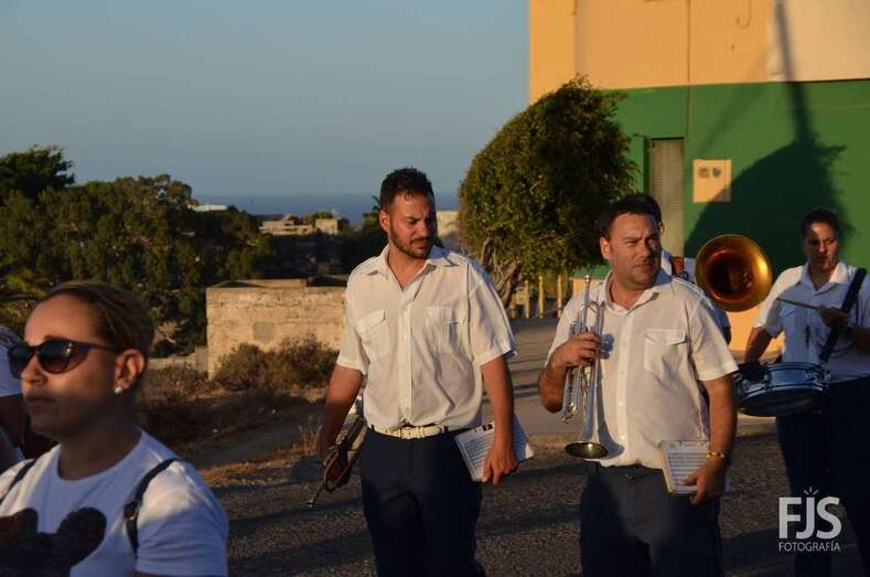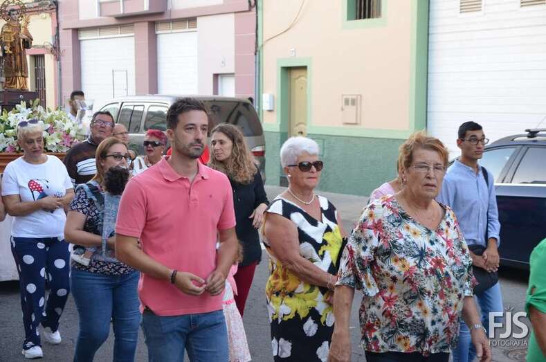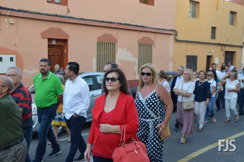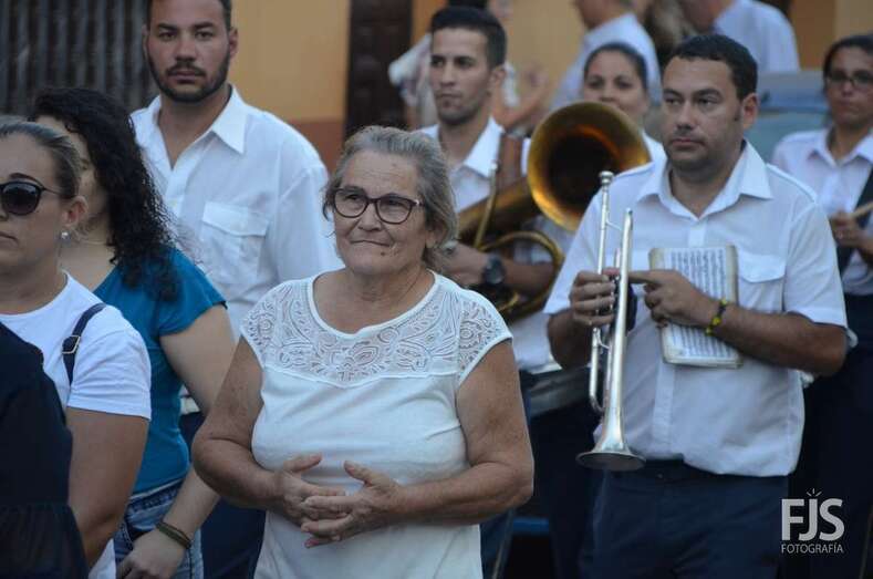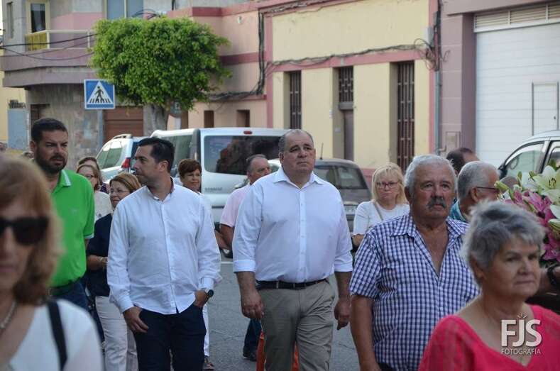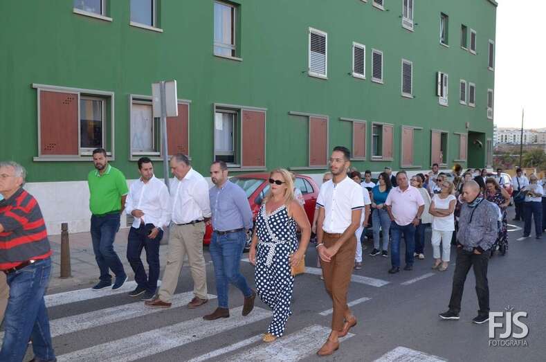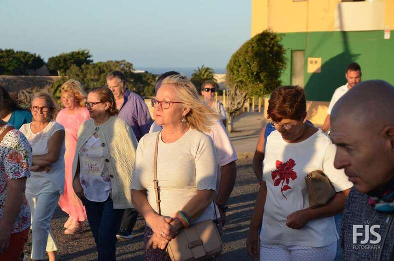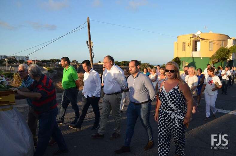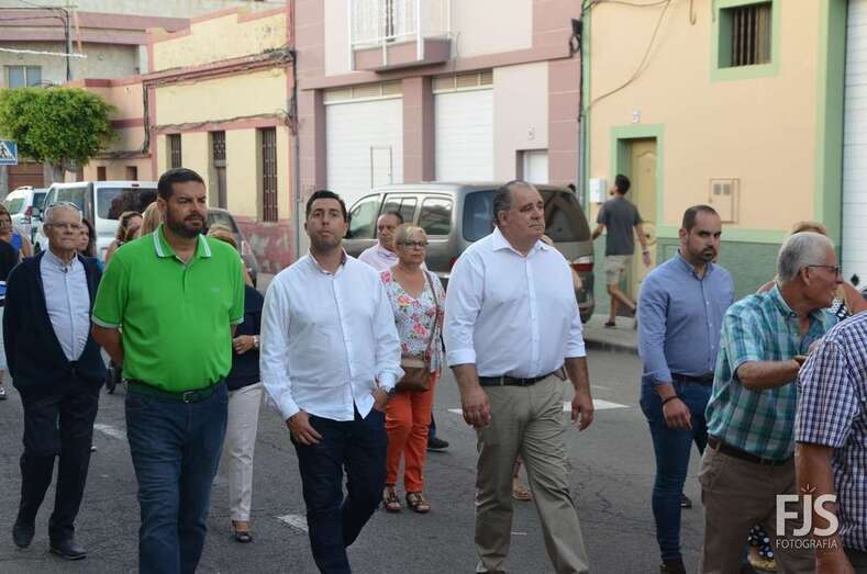 El cortejo religioso contó el acompañamiento de un nutrido grupo de files y de representantes públicos, entre los que se encontraban el nuevo director de Trabajo del Gobierno de Canarias, exconcejal y pregonero de las fiestas de El Caracol de este año, el socialista Alejandro Ramos, así como varios ediles de la Corporación local como Diego Ojeda, Juan Martel y Juan Antonio Peña. La música la puso una banda.