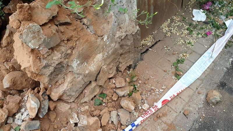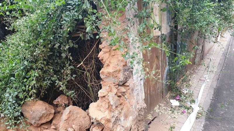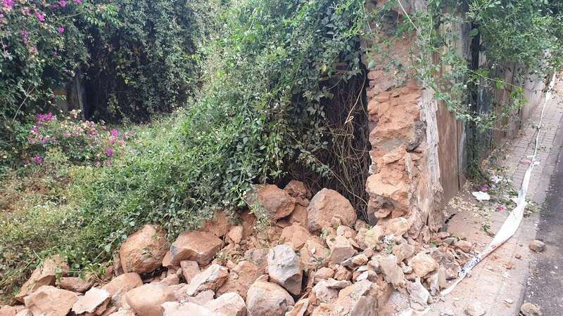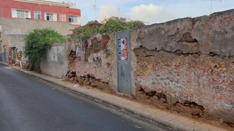 Telde.- Un antiguo muro conformado por grandes bloques de piedras se ha erigido en un serio peligro para la integridad física de transeúntes y vehículos que pasen por la calle de Congreso de Los Llanos de Telde.