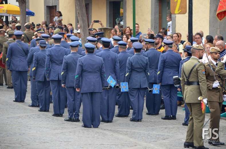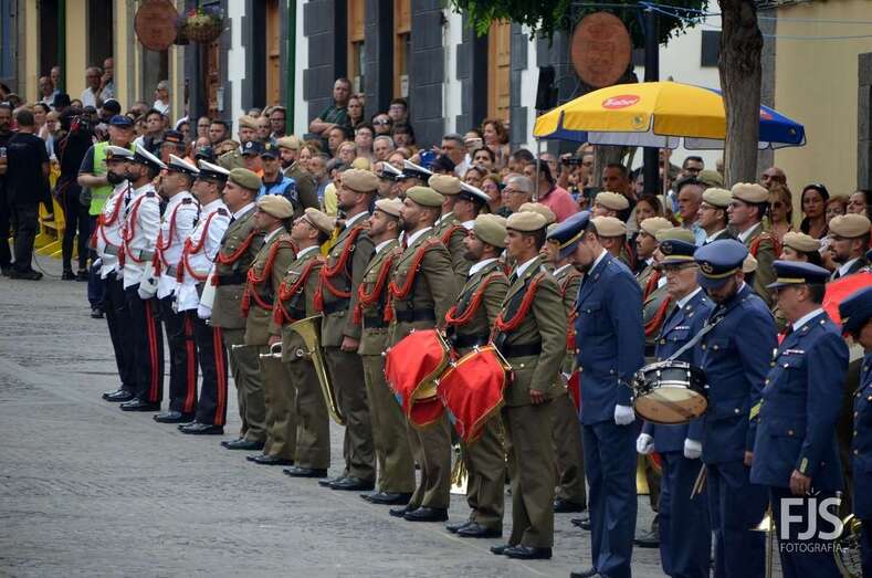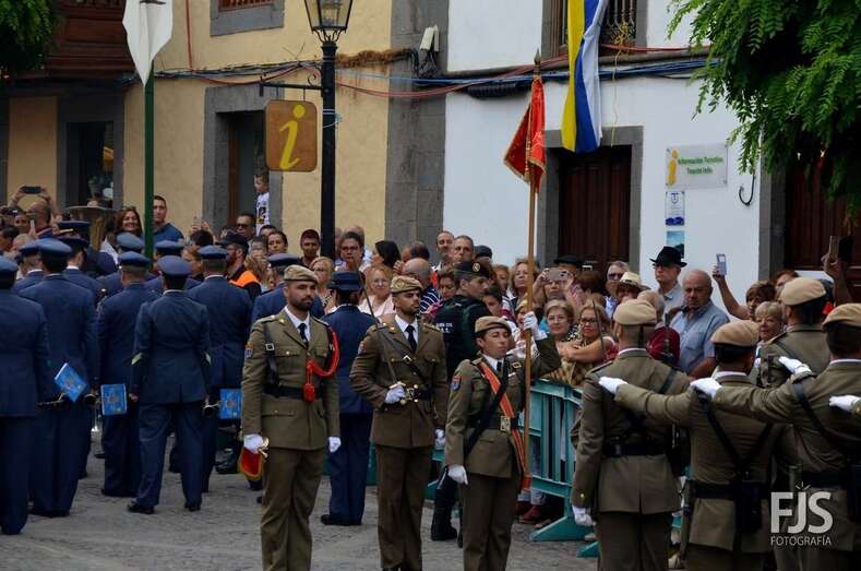 Tras la parada militar de rigor y la eucaristía que el obispo de la Diócesis Canariense Francisco Cases Andreu presidió en la Basílica, la Virgen del Pino procesionó este mediodía por las principales calles del casco histórico de Teror, arropada por una multitud de devotos que no quisieron perderse tan importante cita y que le brindaron varias petaladas.