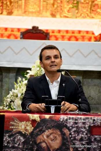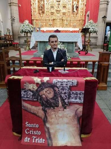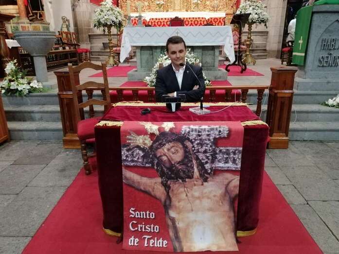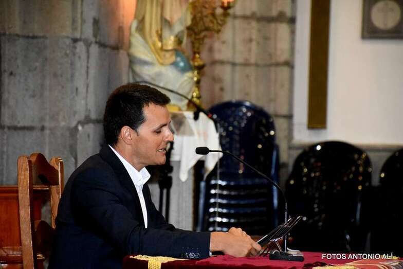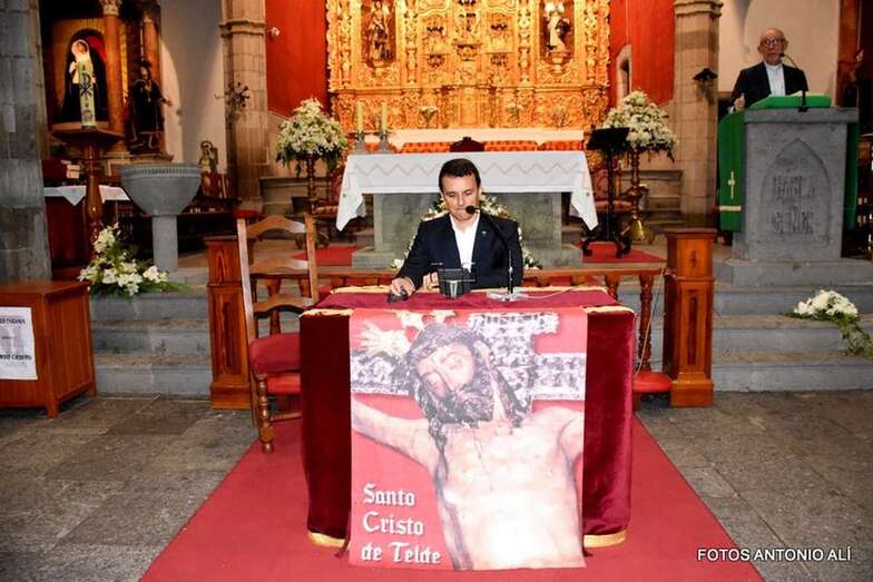 El acto comenzó al término de la eucaristía que desde las 19.30 horas ofició el cura del templo matriz de Telde, José María Cabrera. Licenciado en Derecho, doctor en Teología y titular de la parroquia de Santa Isabel de Hungría, en Las Palmas de Gran Canaria, Juan María Mena Hernández brindó un pregón no al uso, algo atípico, como él mismo explicó. Una exposición oral salpicada de textos bíblicos y en la que lanzó un mensaje de renovación y transformación.