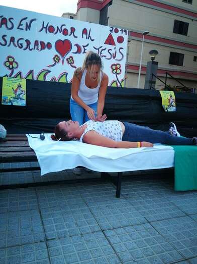 El acto organizado por el Patronato La Sal en el marco de las fiestas de verano en honor del Sagrado Corazón de Jesús sirvió para que los niños y también algunos adultos aprendieran diferentes técnicas como la maniobra de Heimlich que se utiliza en caso de asfixia por atragantamiento.