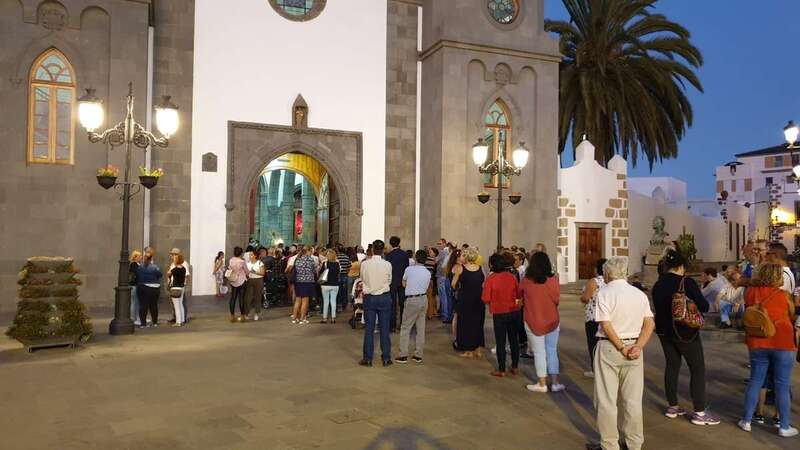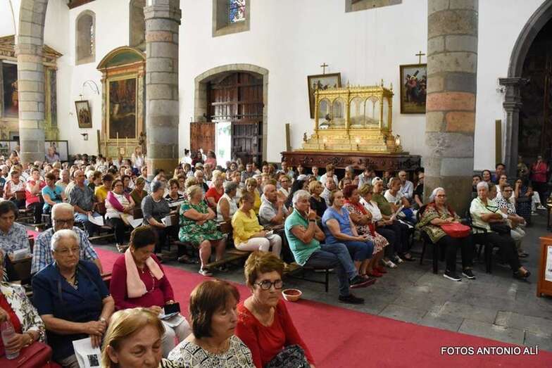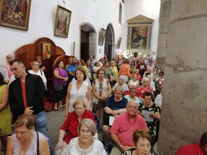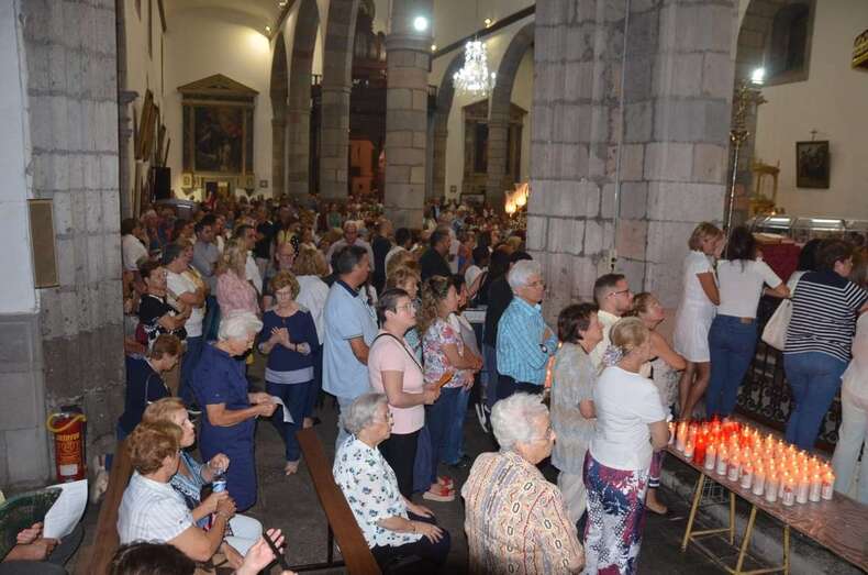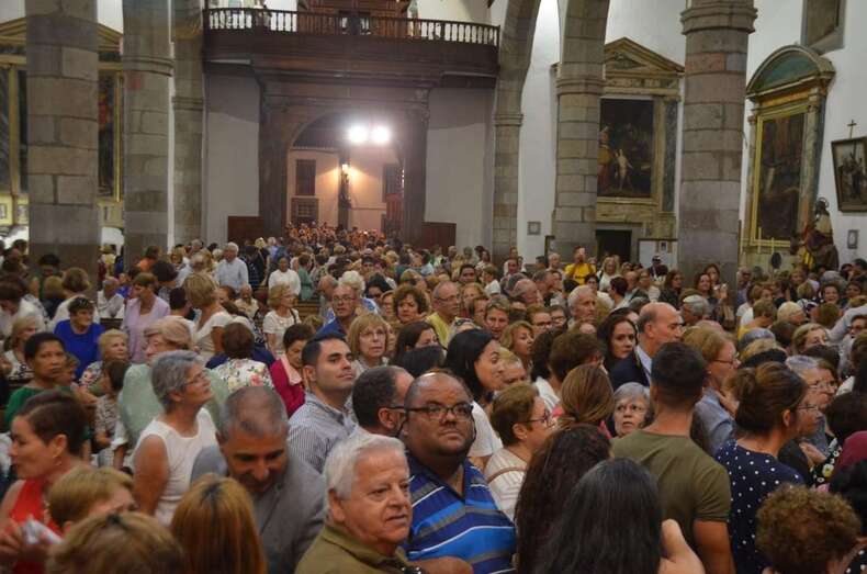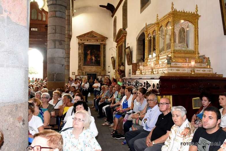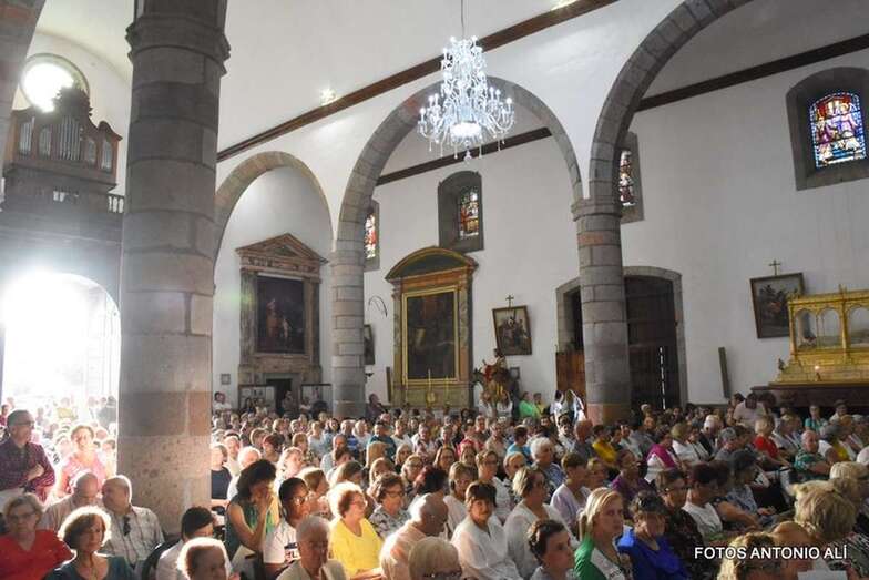 Como suele ocurrir todos los años en esta importante cita religiosa, el santuario más antiguo de Telde se quedó pequeño para acoger a los cientos de feligreses que quisieron presenciar en vivo y en directo el conmovedor descenso de la bella escultura modelada en la primera mitad del siglo XVI por los indios tarascos con pasta de millo y de otros elementos vegetales.