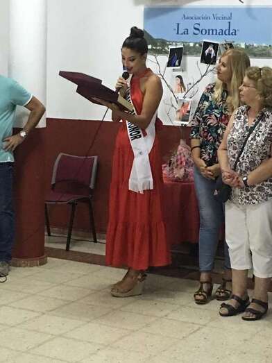 Telde.- La joven y guapa teldense Tania Medina recibió este viernes el agasajo de su barrio natal, Lomo Blanco, en un emotivo y sencillo acto que tuvo lugar en el local social que gestiona el colectivo vecinal La Somada.