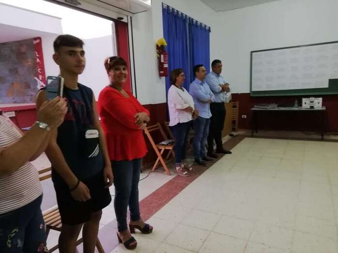 Al acto acudieron amigos, vecinos y familiares de Tania Medina, así como los ediles Servando González (NC) e Inés y Agustín Déniz, ambos del PSOE, que felicitaron a la agraciada y preparada joven de Lomo Blanco.