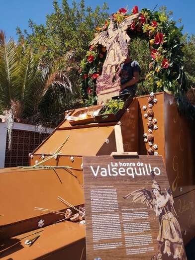 El eje central de la alegoría de su carreta, con el título La honra de Valsequillo, quería representar con una belal composición la vinculación espiritual o cultural a la figura de San Miguel de todas las familias que han crecido y formado parte de este pueblo.