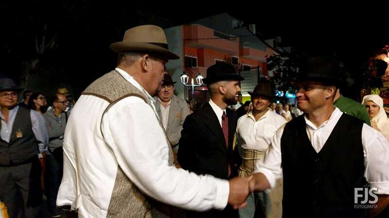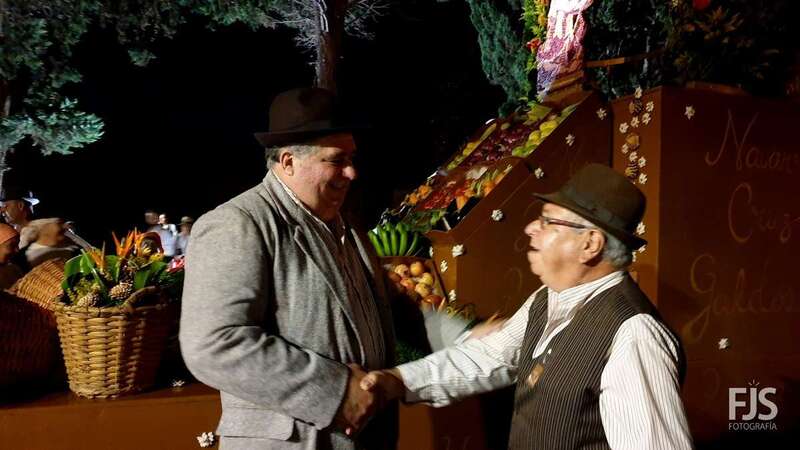 El concejal teldense Juan Martel, responsable del Distrito Cumbre, felicitó en la misma romería a la comitiva de Los Arenales.